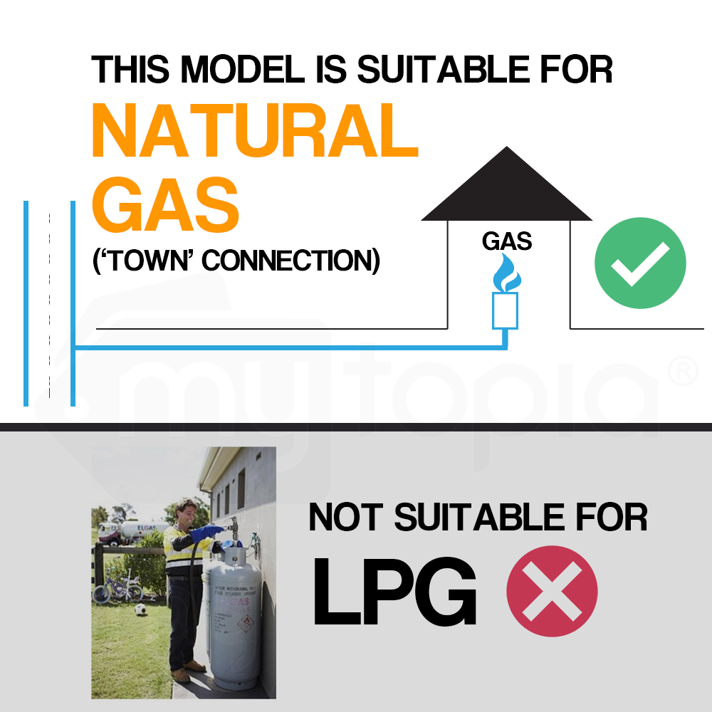 - NOTE: THIS MODEL IS ONLY SUITABLE FOR USE WITH A NATURAL GAS ‘TOWN’ CONNECTION