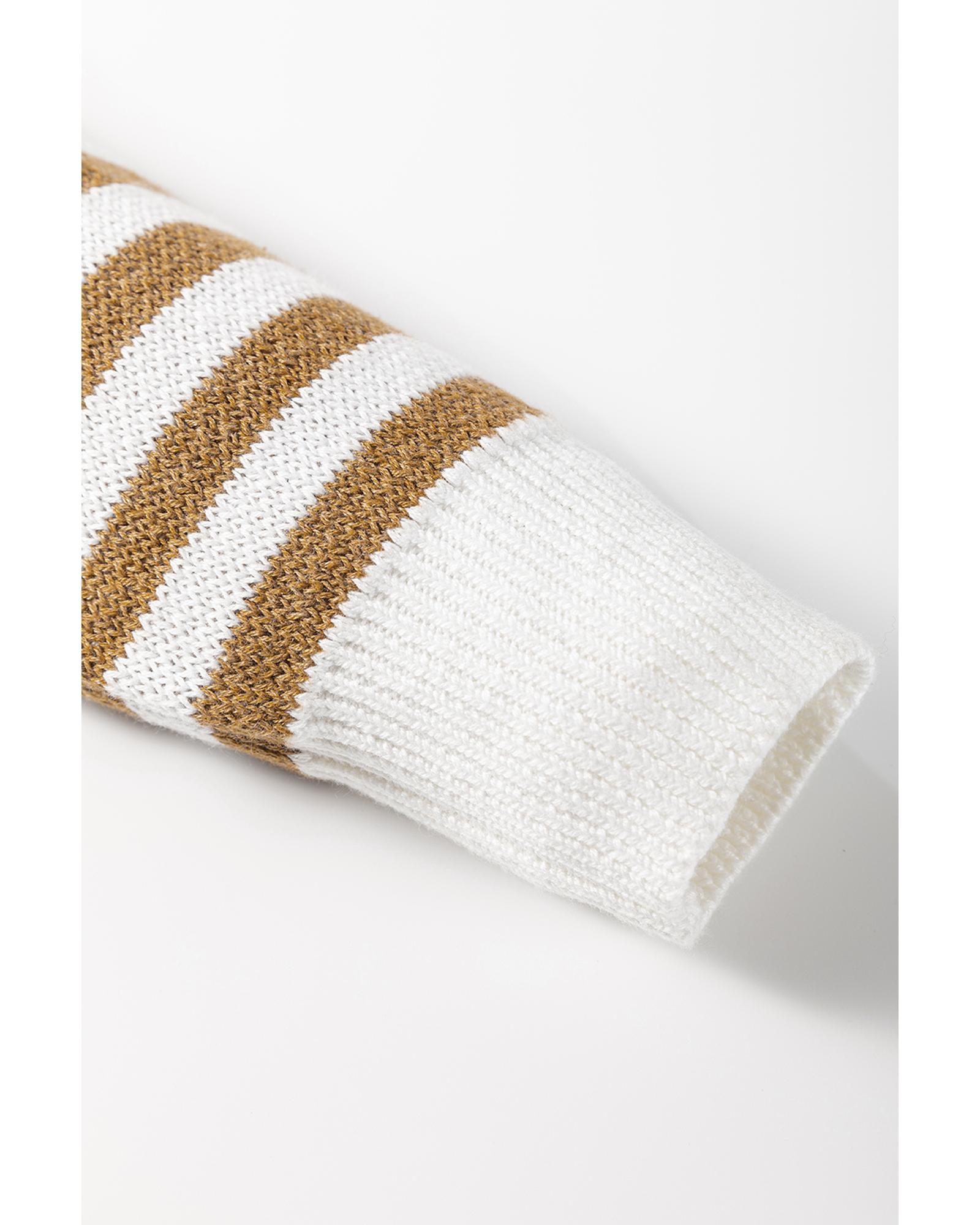 Fiery Red Contrast Trimmed Striped Drop Shoulder Sweater - S