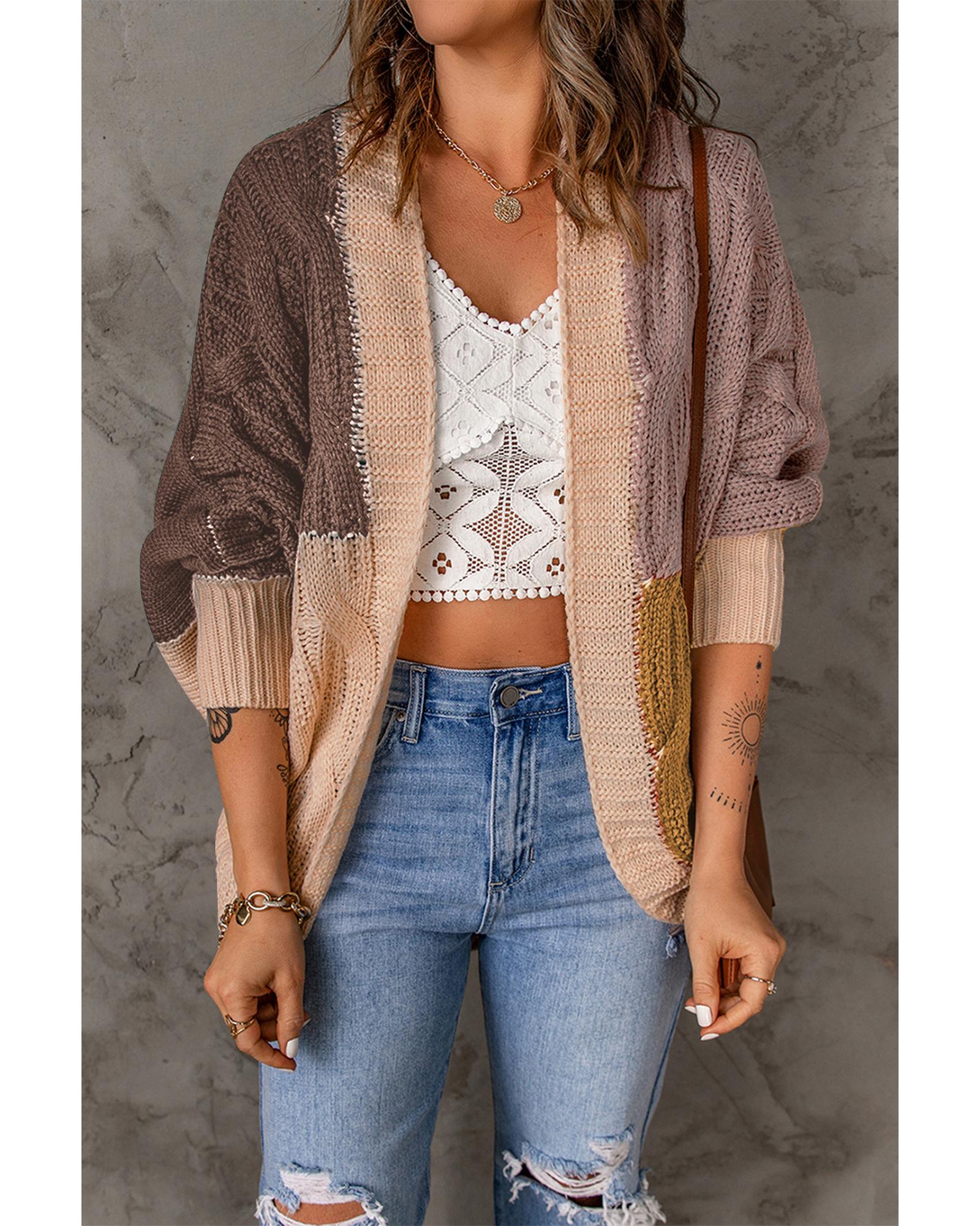 Brown Color Block Loose Open Front Knitted Cardigan – 2XL