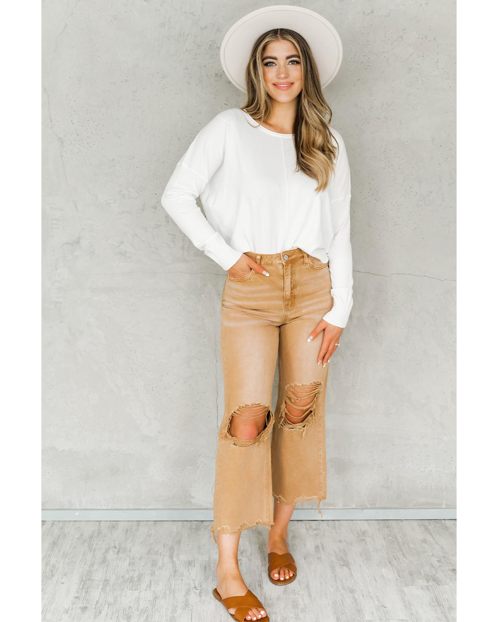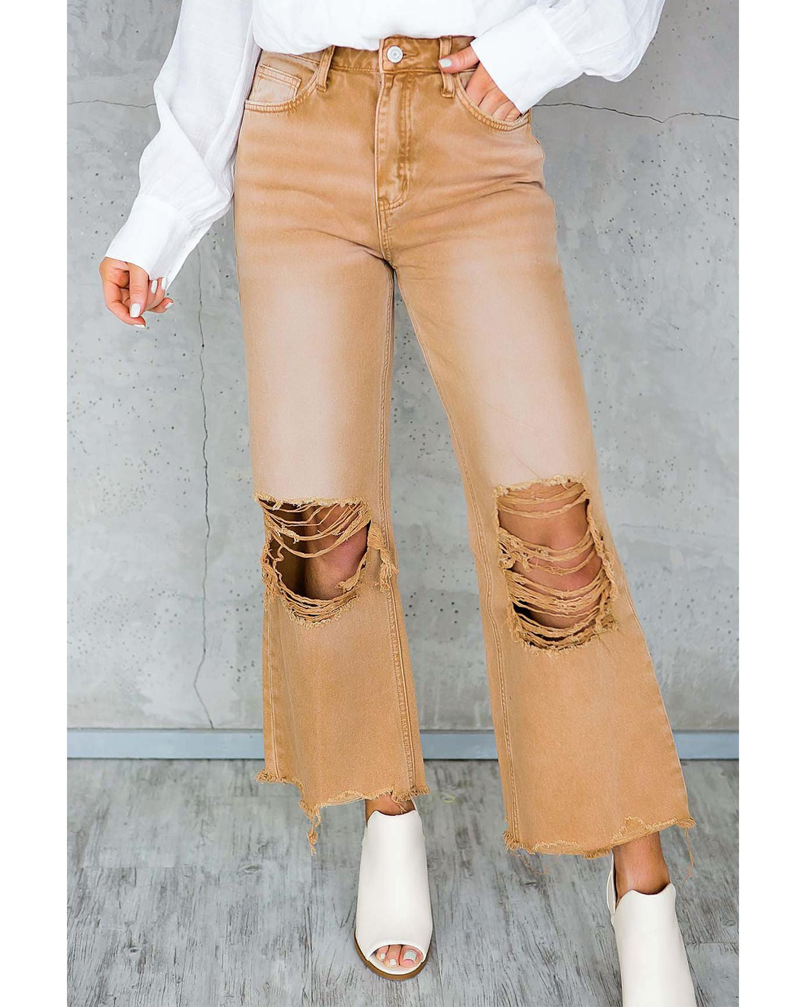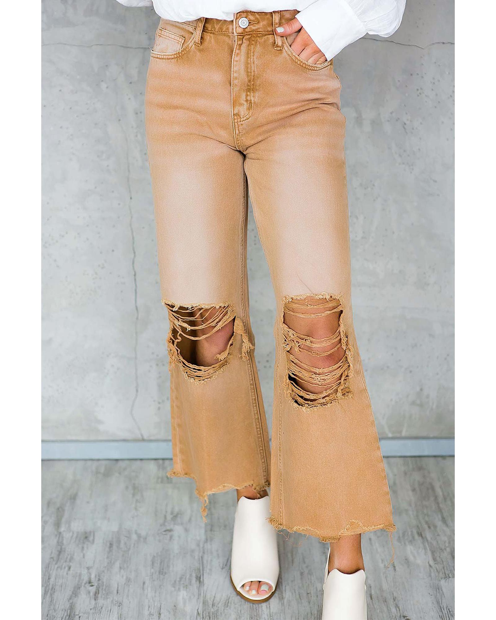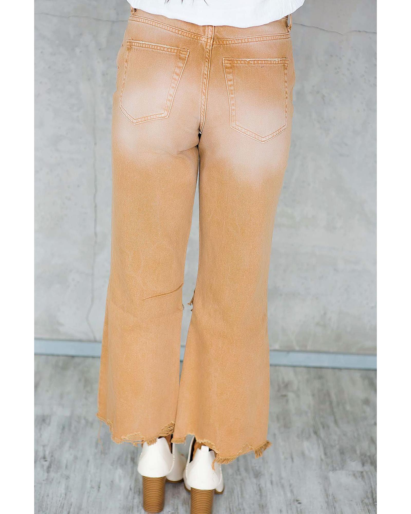 Brown Distressed Hollow-out High Waist Cropped Flare Jeans – 12 US