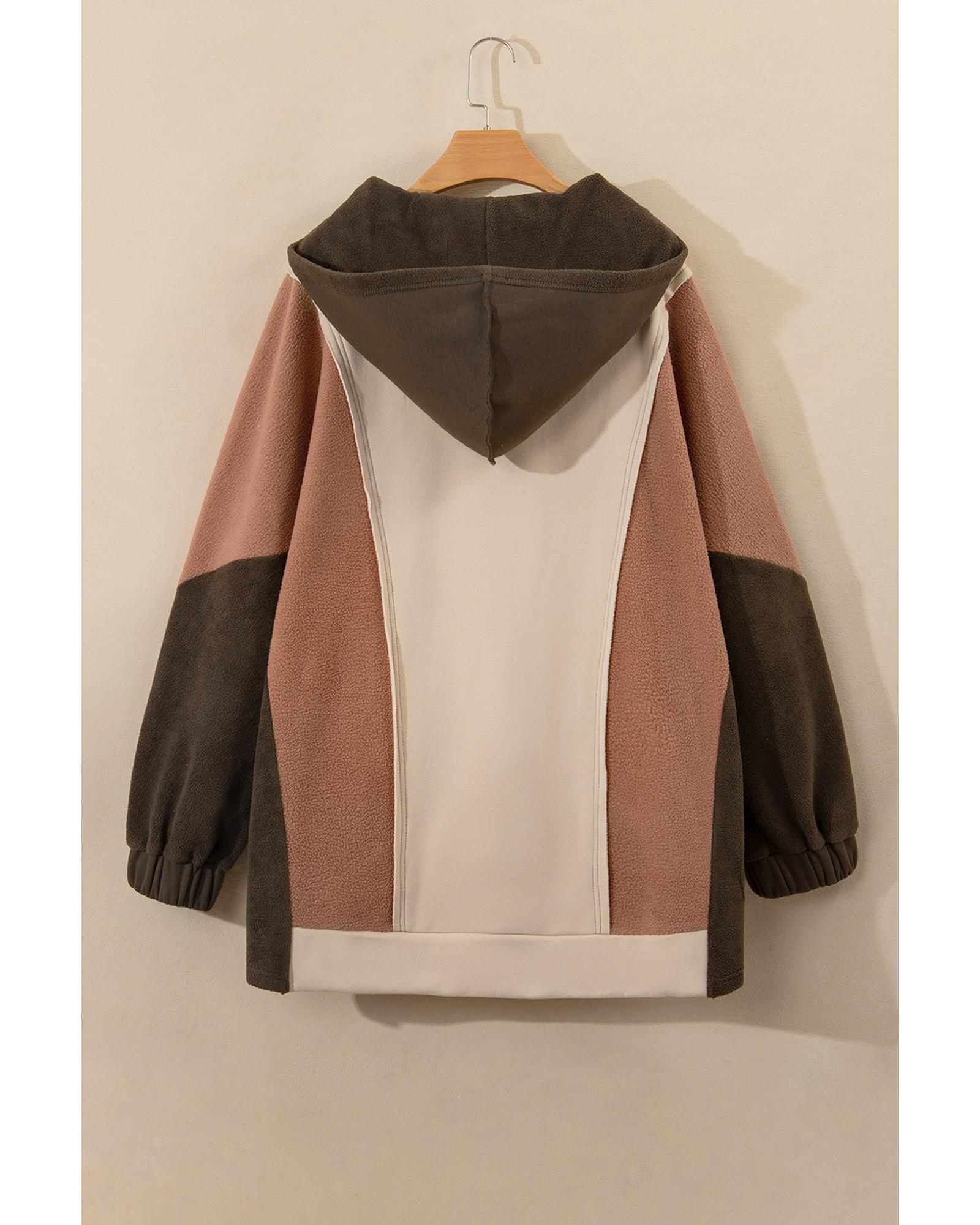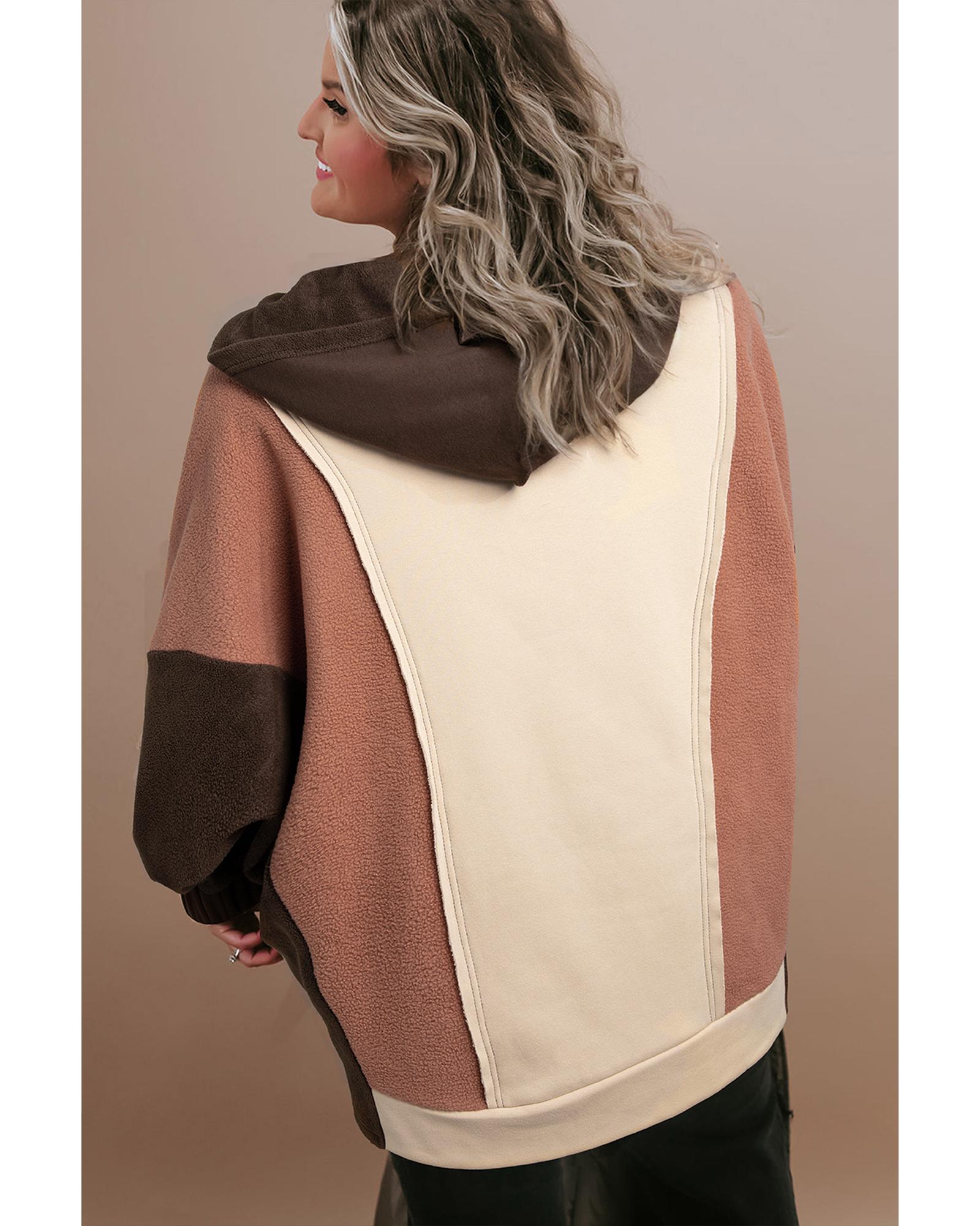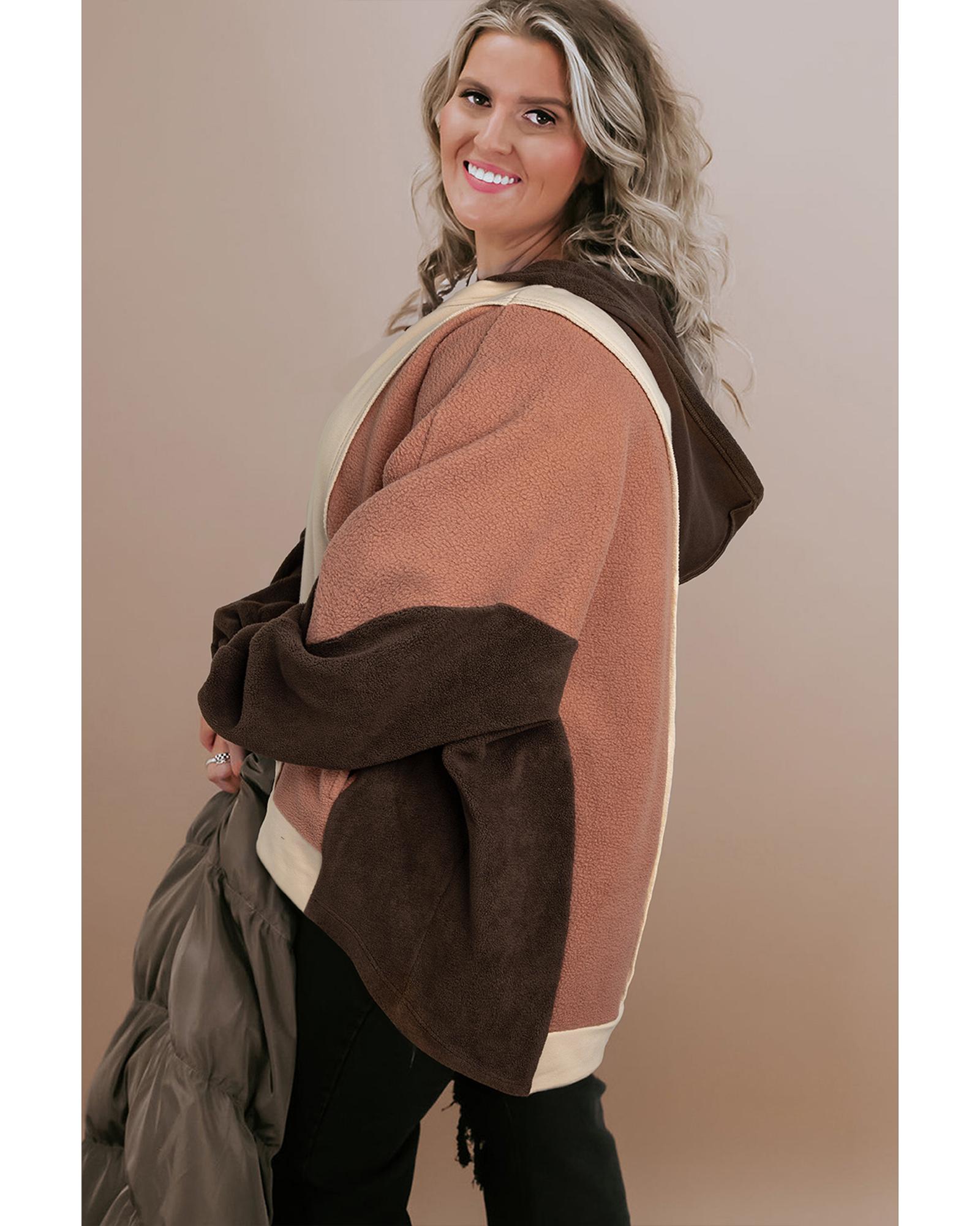 Brown Exposed Seam Colorblock Plus Size Hoodie – 1X