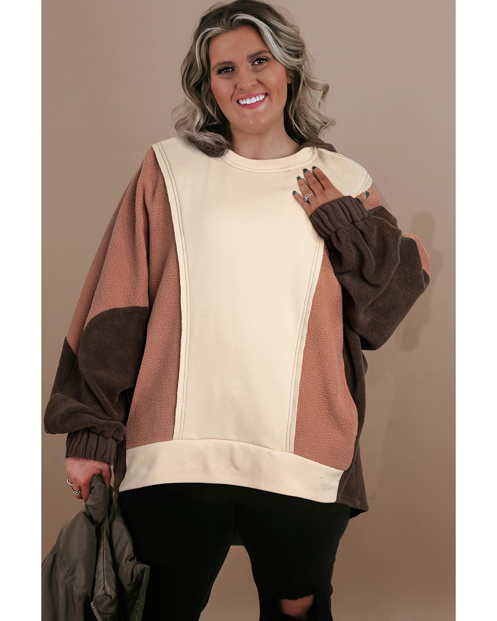 Brown Exposed Seam Colorblock Plus Size Hoodie – 3X
