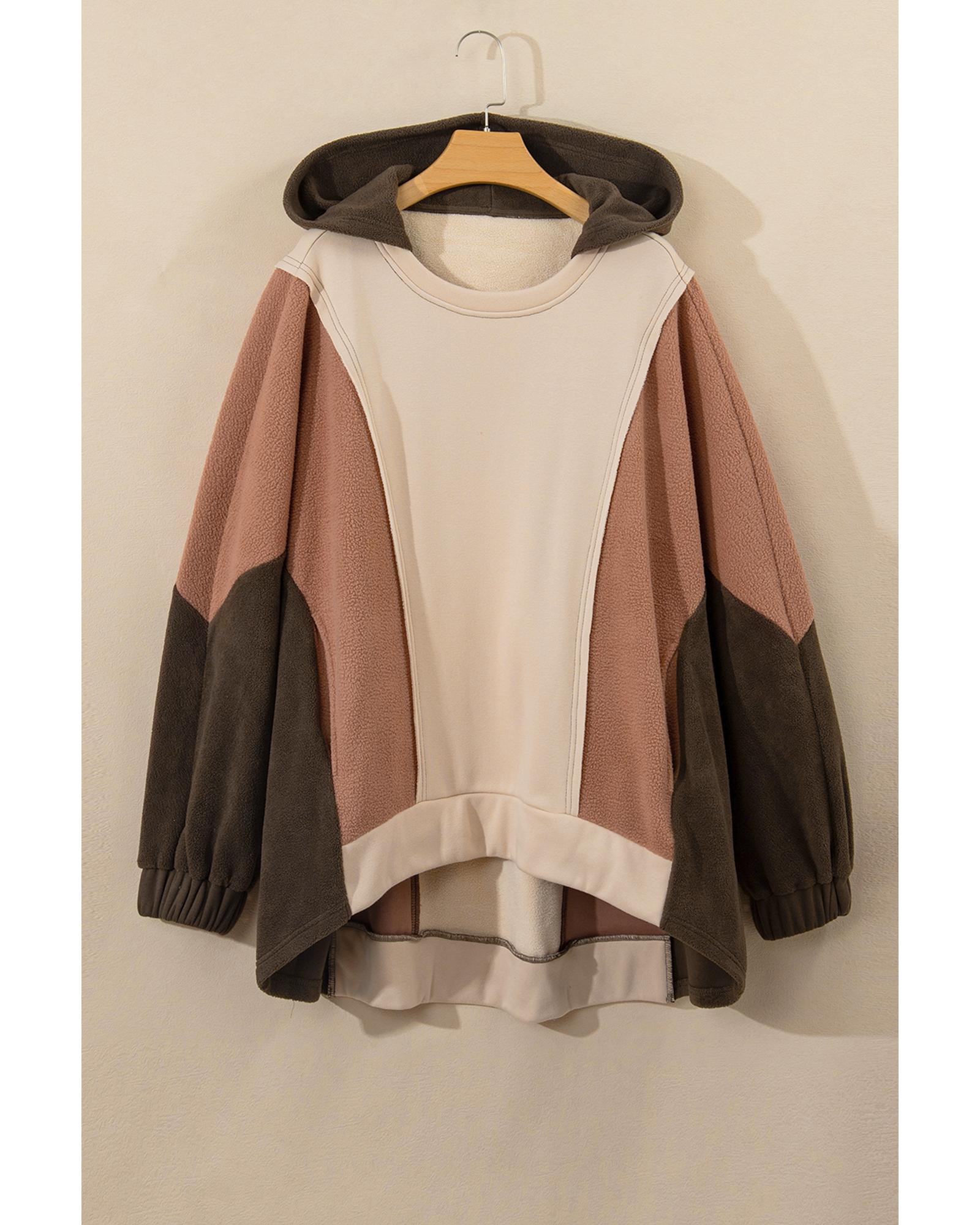 Brown Exposed Seam Colorblock Plus Size Hoodie – 4X