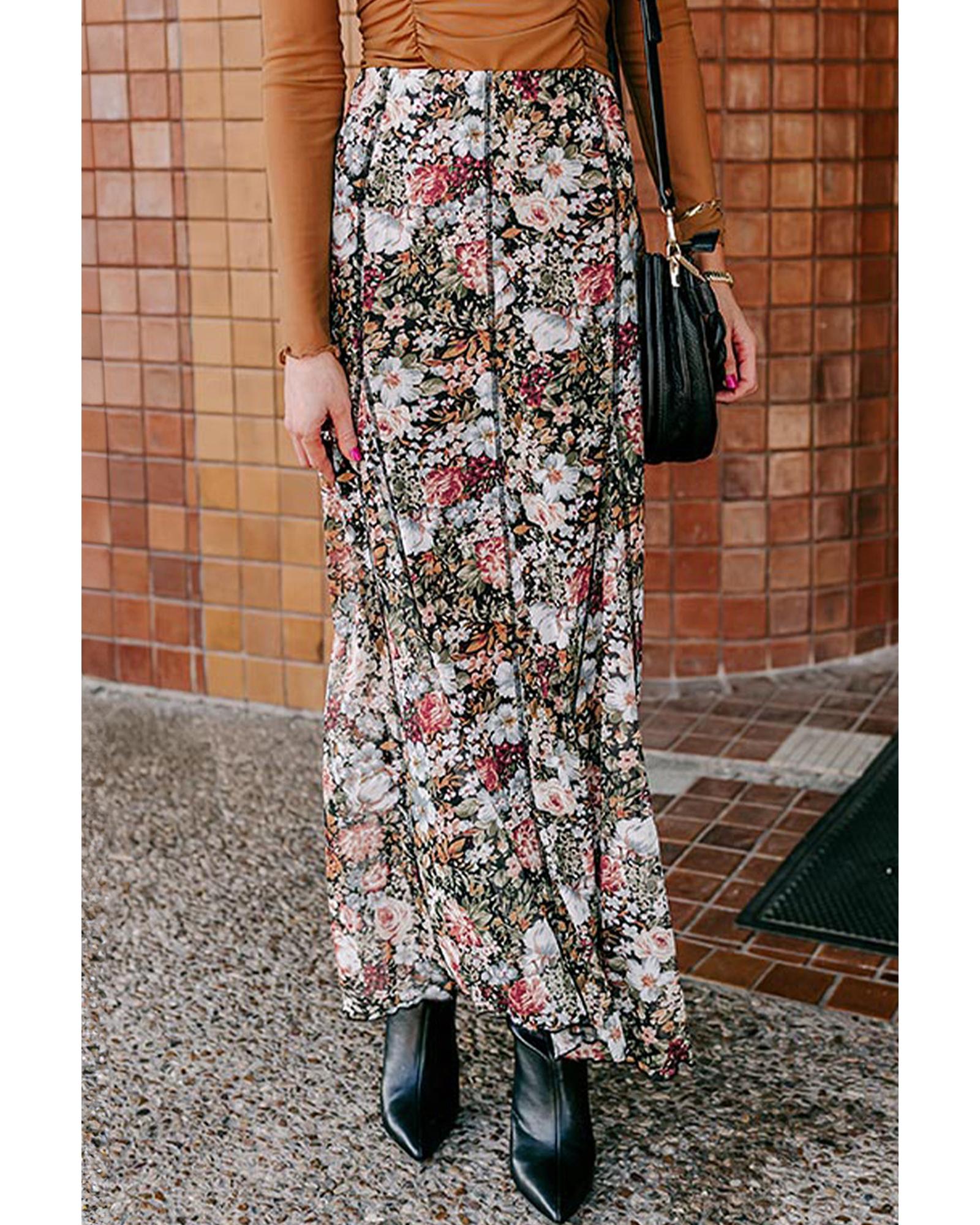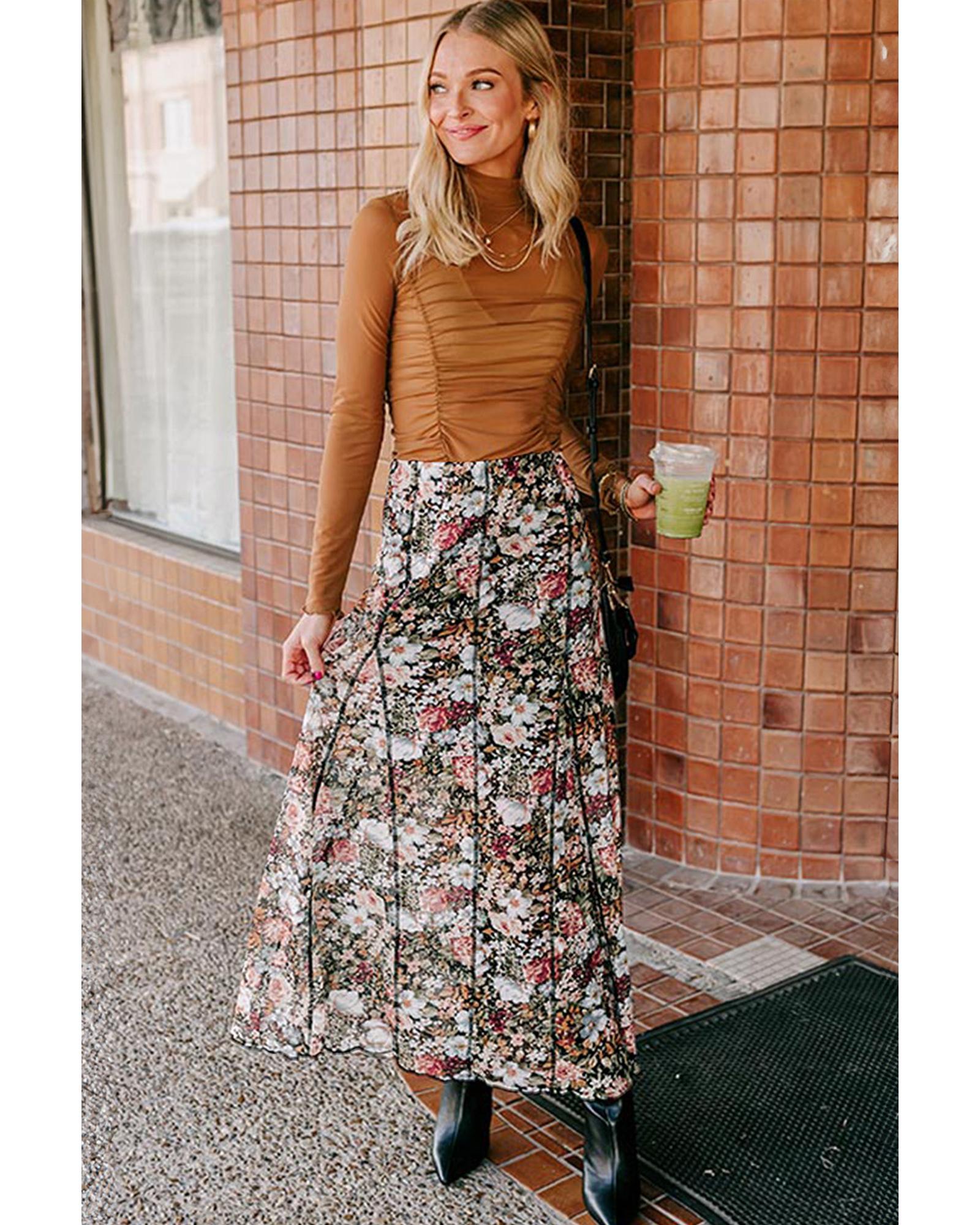 Brown Floral Print High Waist Maxi Skirt - M Original price was: $62.99.Current price is: $33.99.
