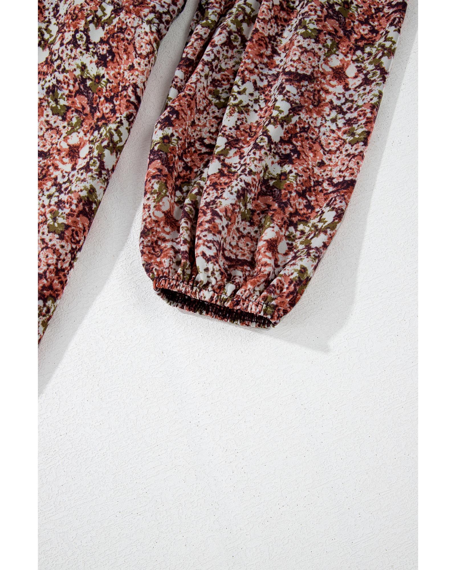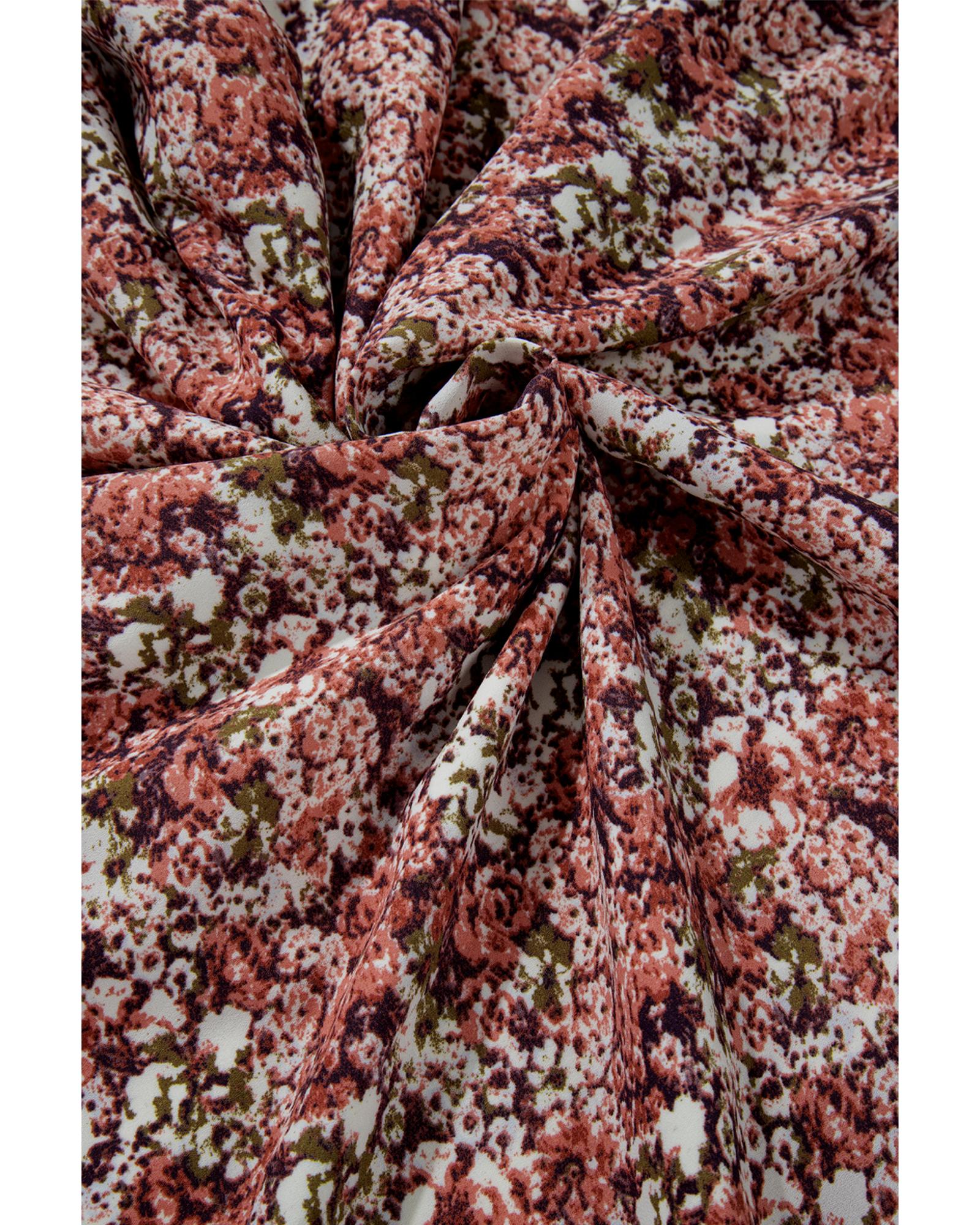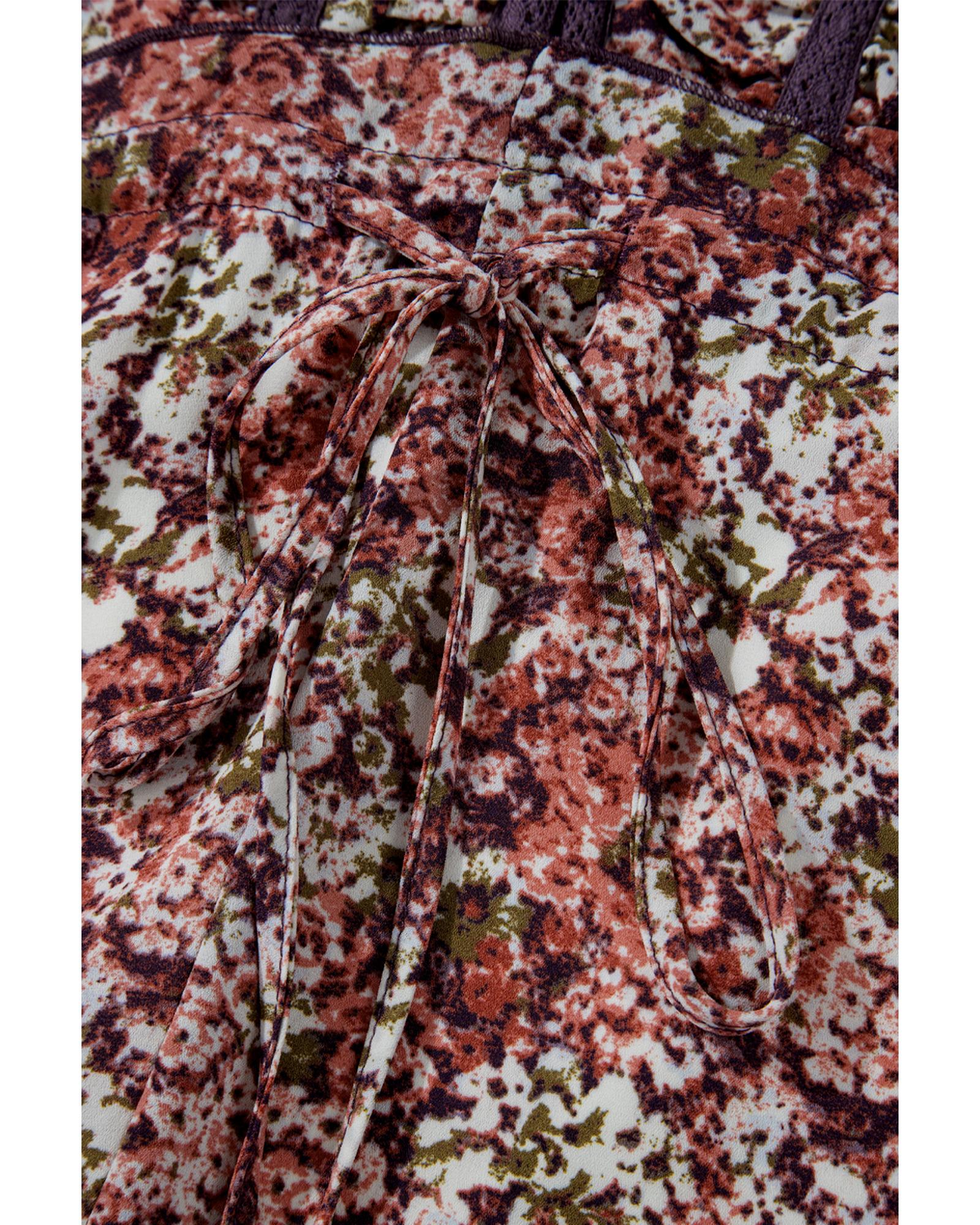 Brown Floral Print Split Front Tiered Frilled V Neck Midi Dress – L
