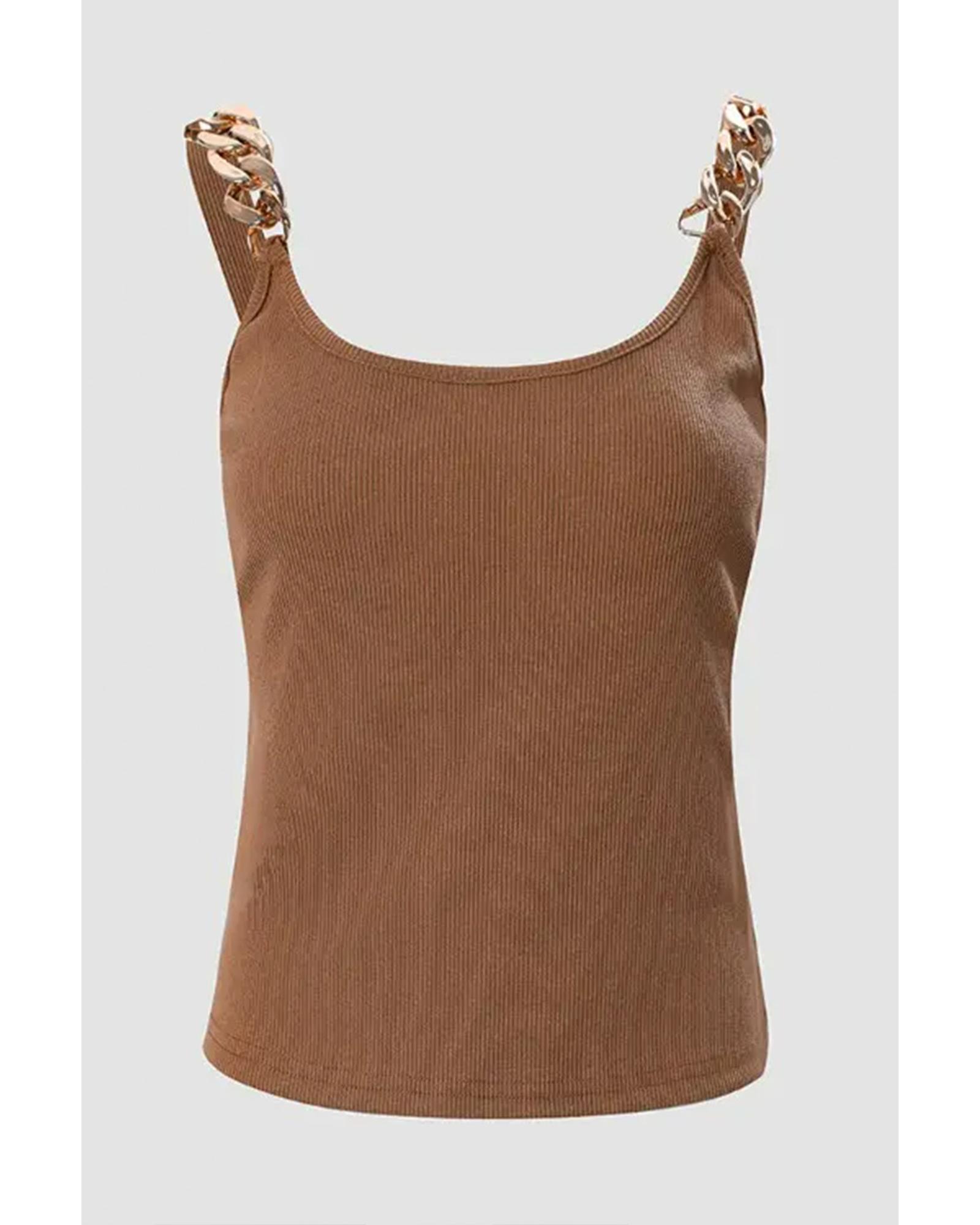 Brown Gold Chain Straps Rib Knit Tank Top – M