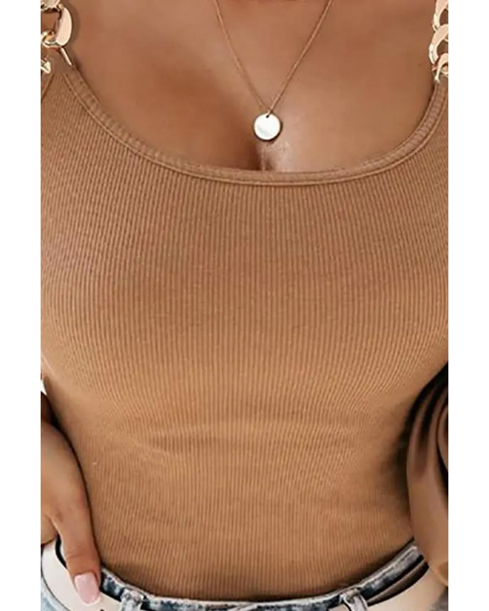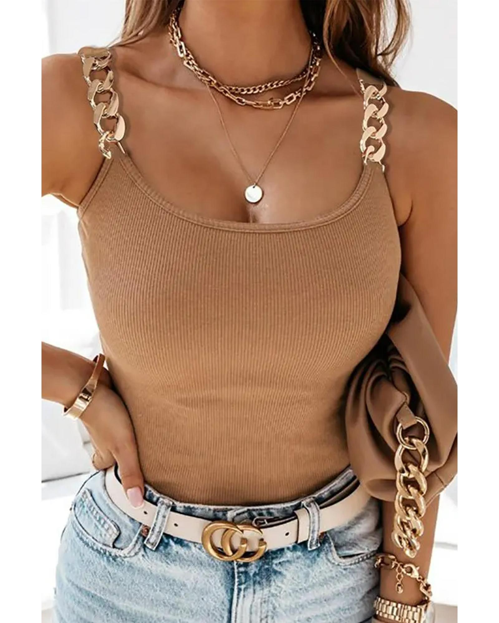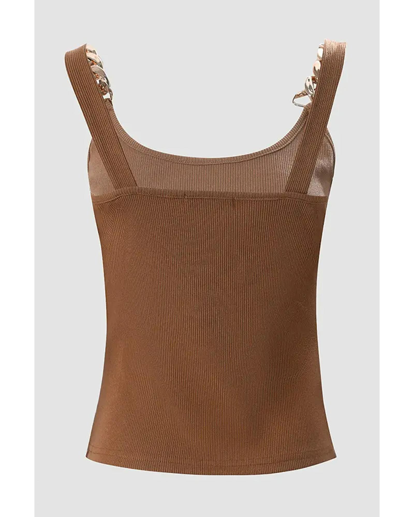 Brown Gold Chain Straps Rib Knit Tank Top – S