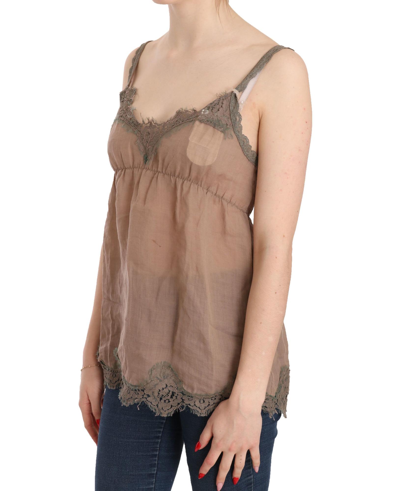 Brown Lace Spaghetti Strap Plunging Top Blouse 44 IT Women