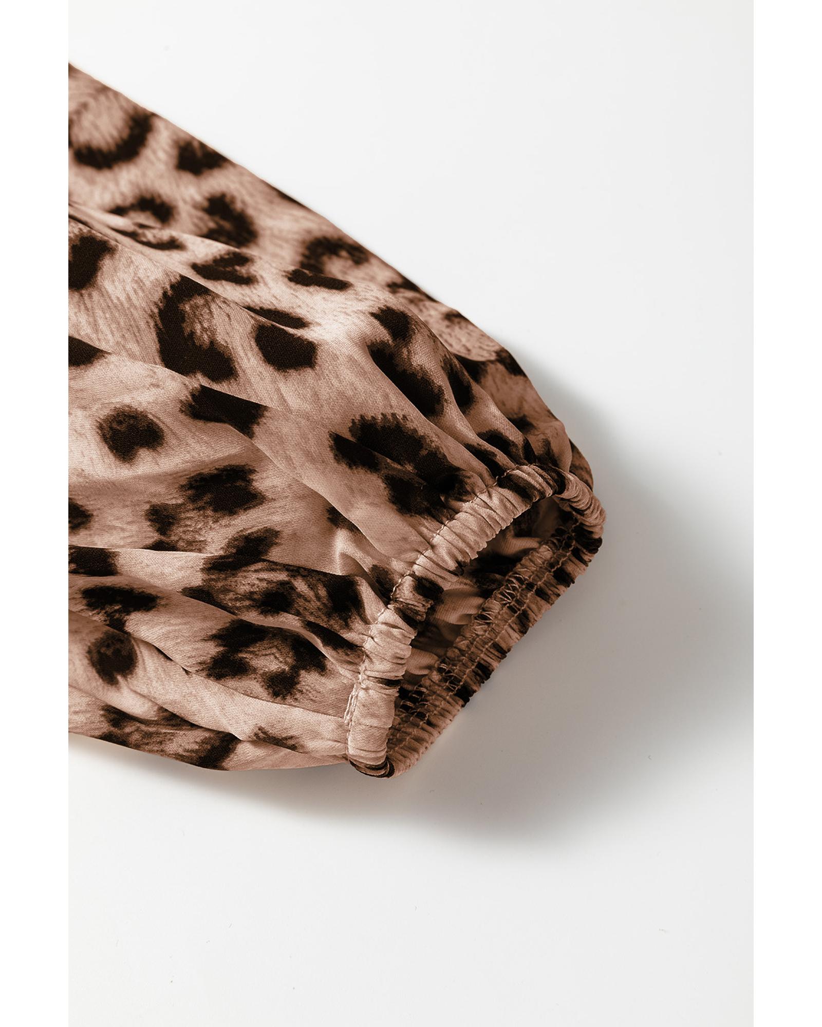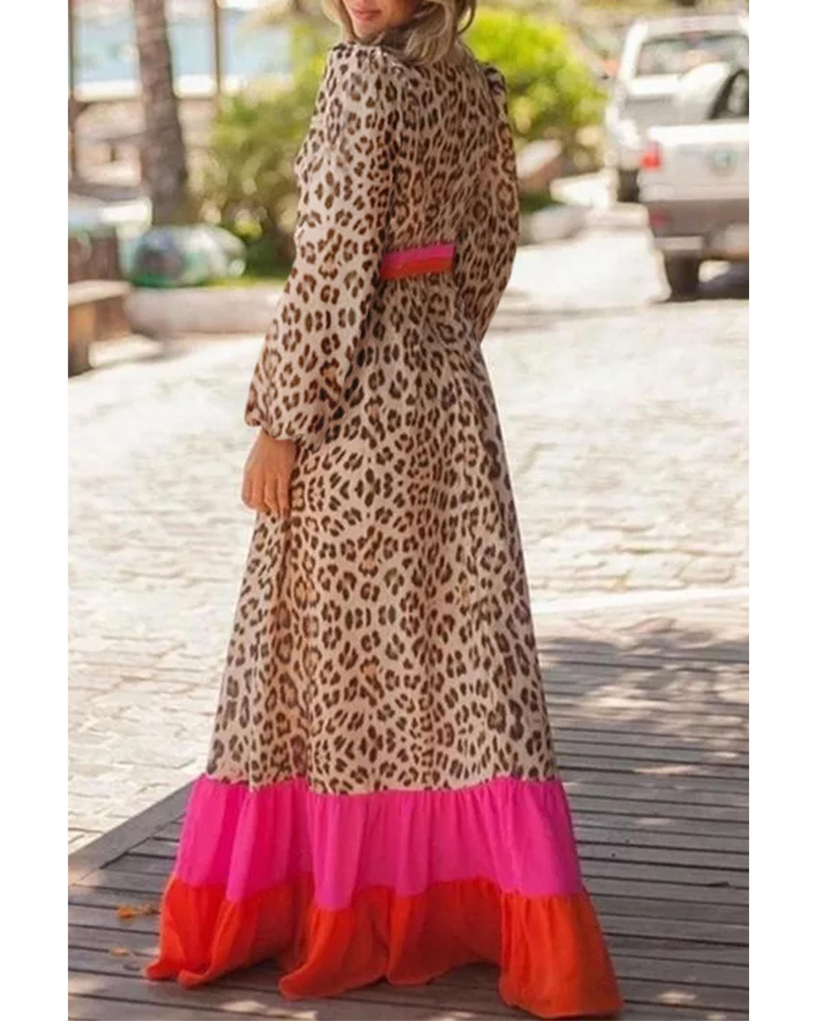 Brown Leopard Color Block V Neck Loose Fit Maxi Dress – S