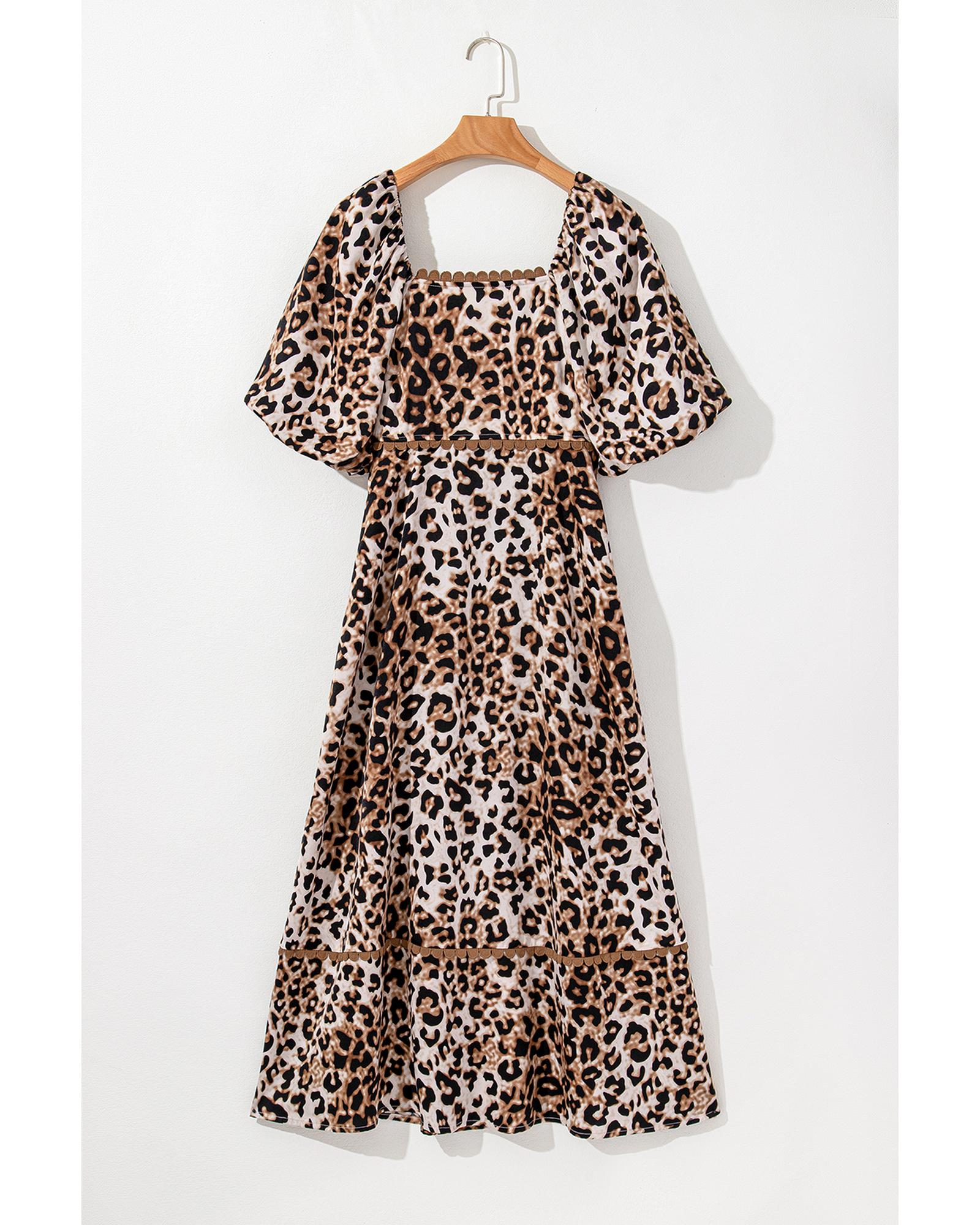Brown Leopard Print Bubble Sleeve Square Neck Maxi Dress - XL Original price was: $81.99.Current price is: $44.99.
