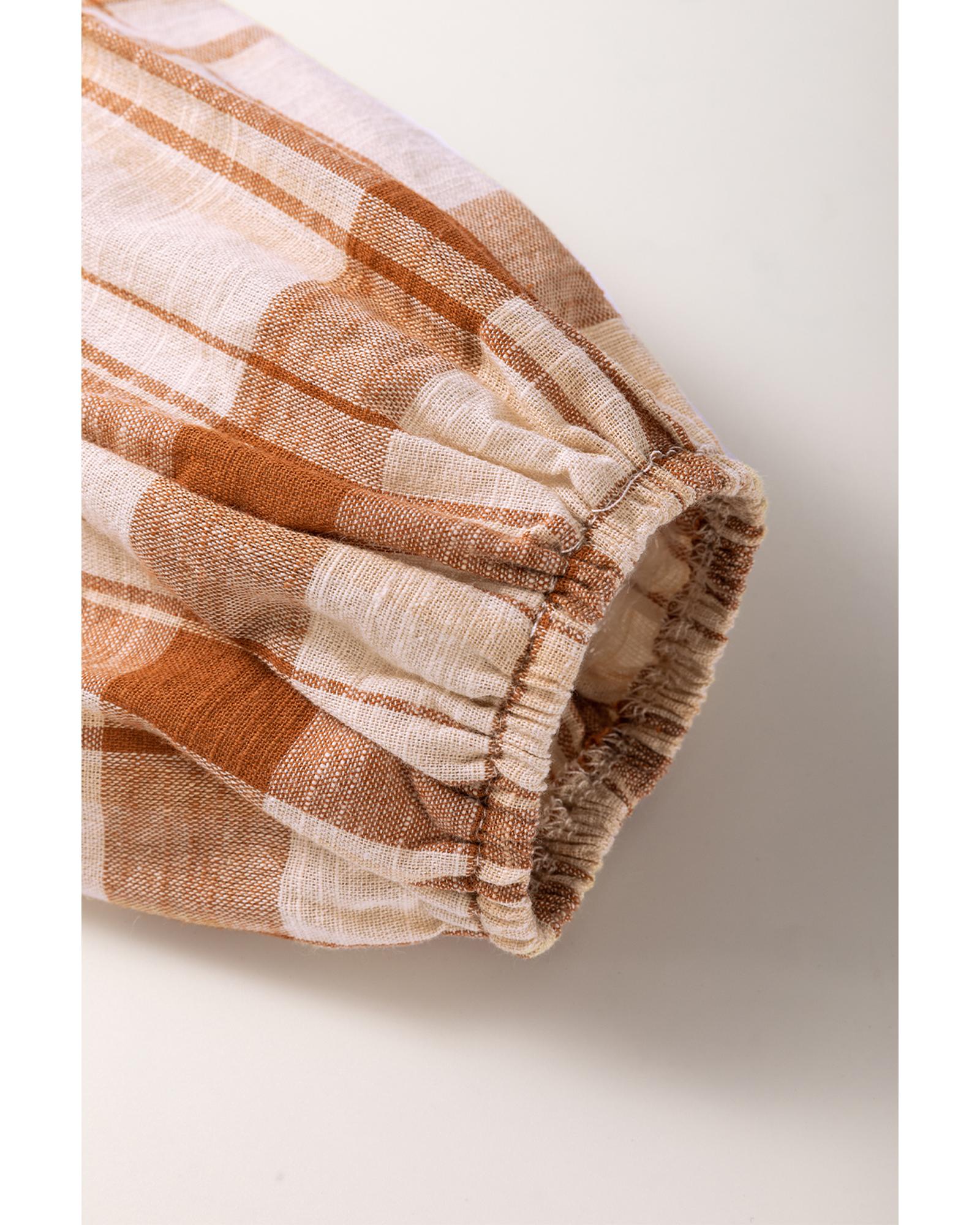 Brown Plaid Print Side Pockets Frilled Babydoll Mini Dress – S