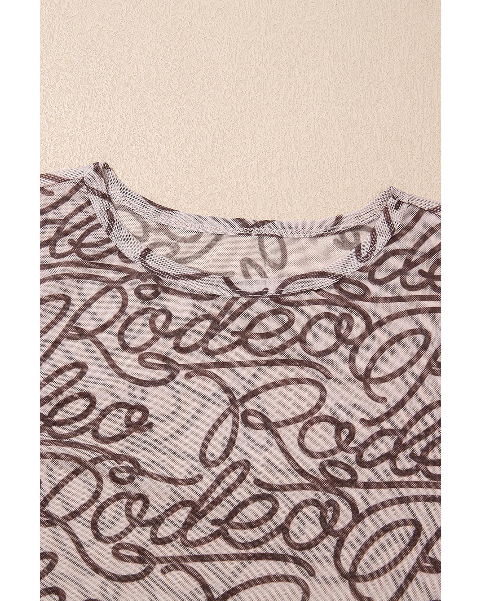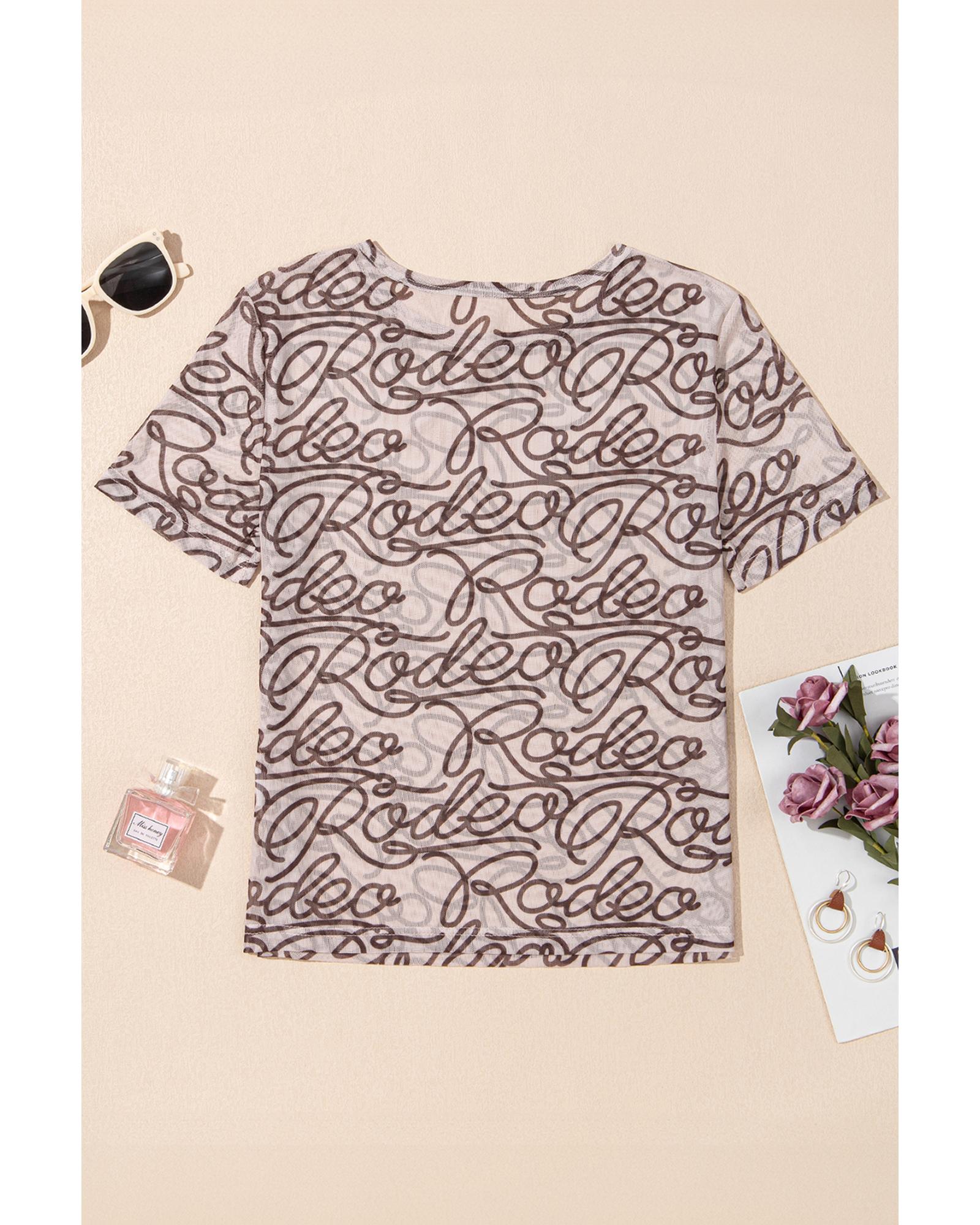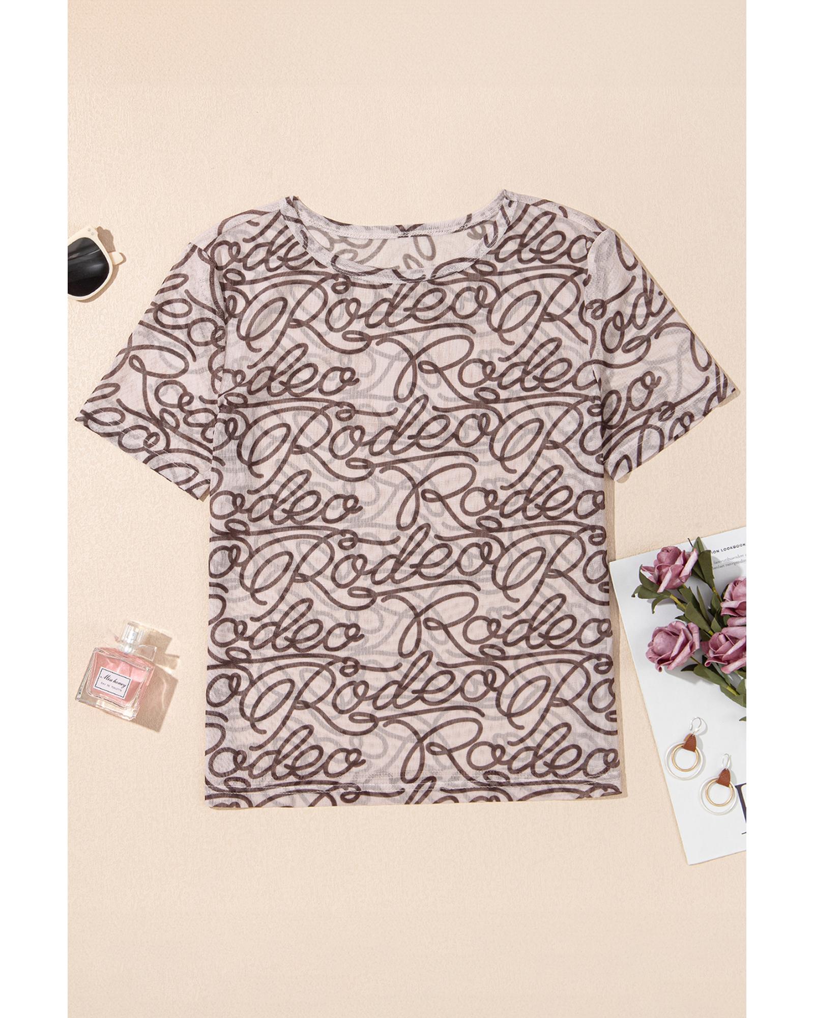 Brown Rodeo Print Round Neck Slim Fit Mesh T Shirt – XL