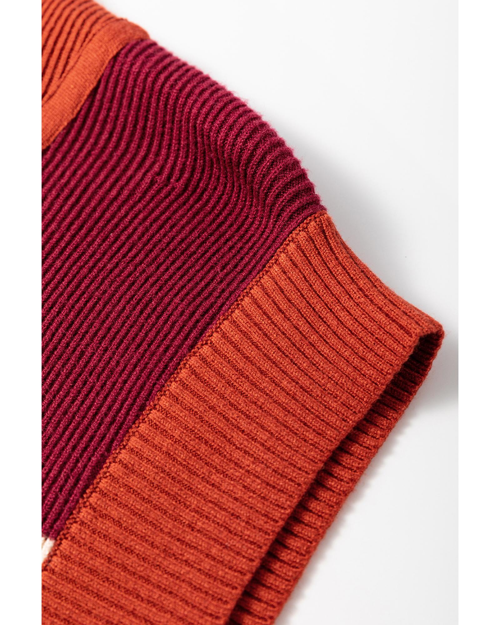 Brown Stripe Color Block Quarter Zip Collar Short Sleeve Sweater Dress – XL