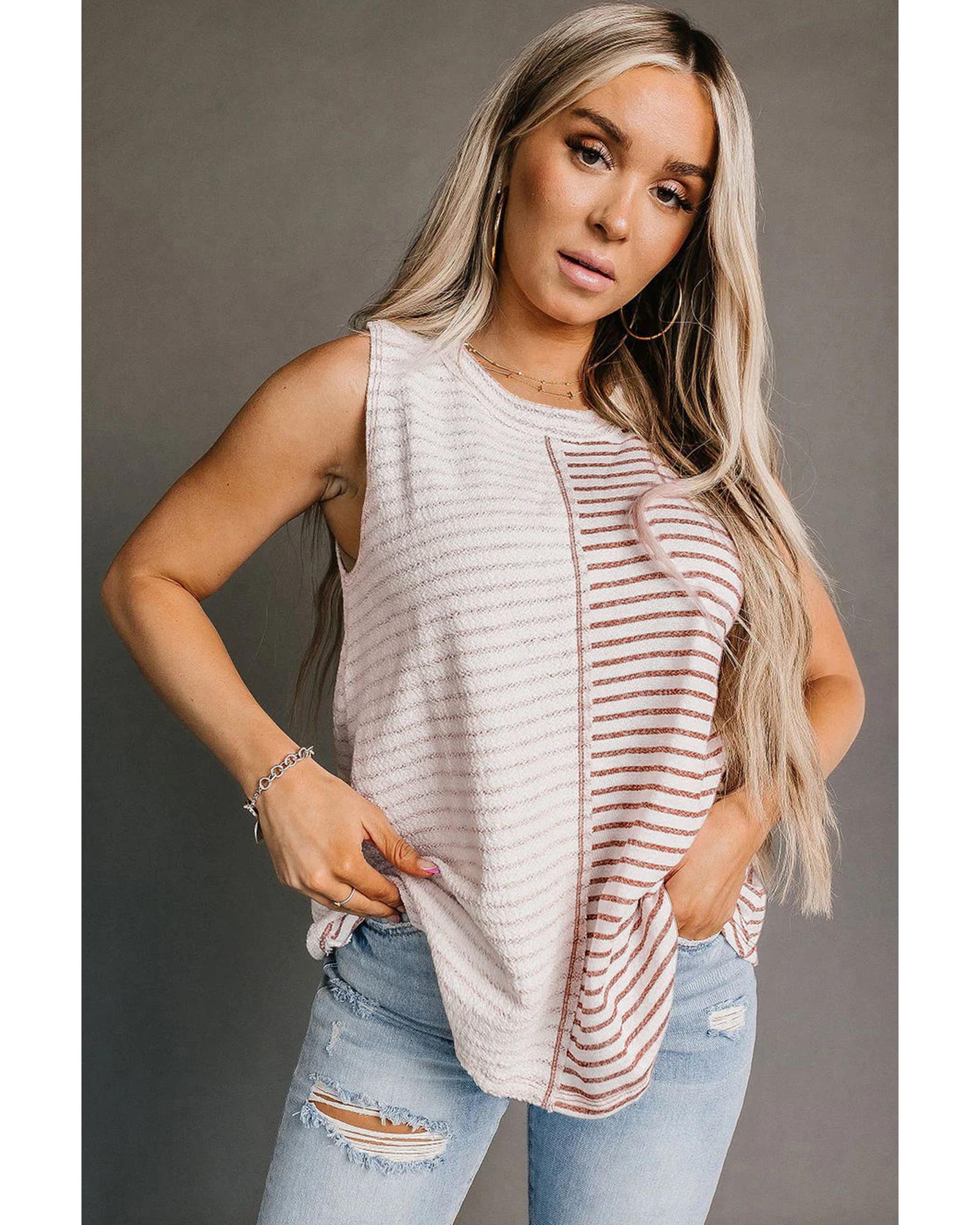 Light Pink Vintage Nashville Printed Patchwork Tank Top - XL