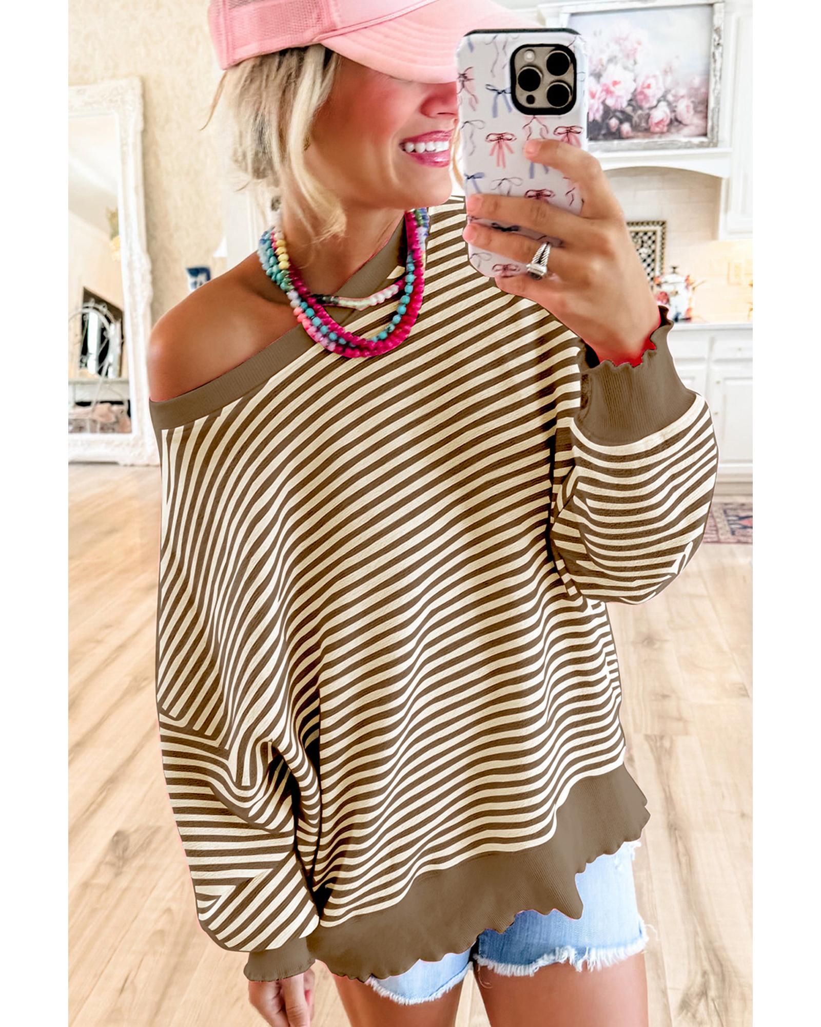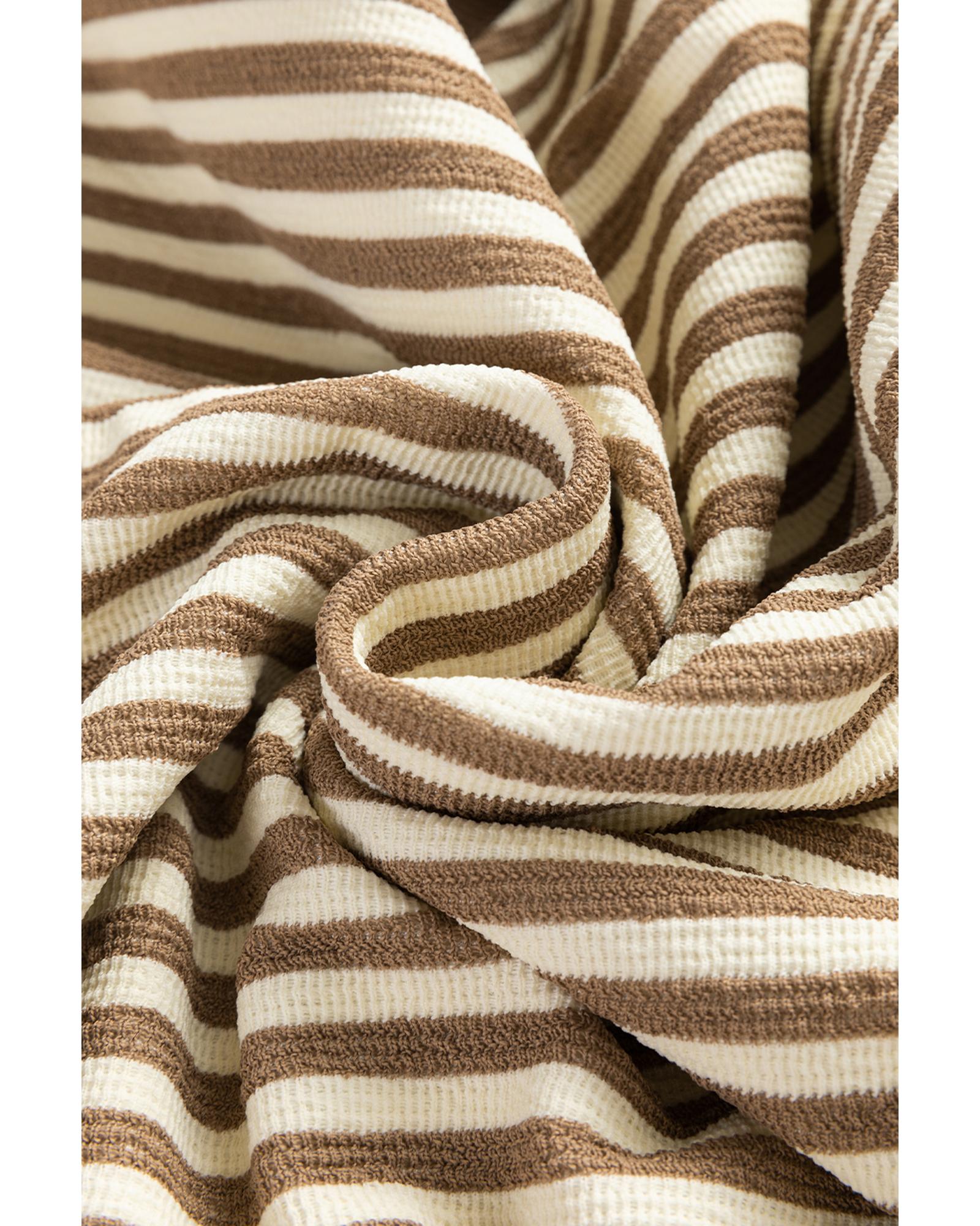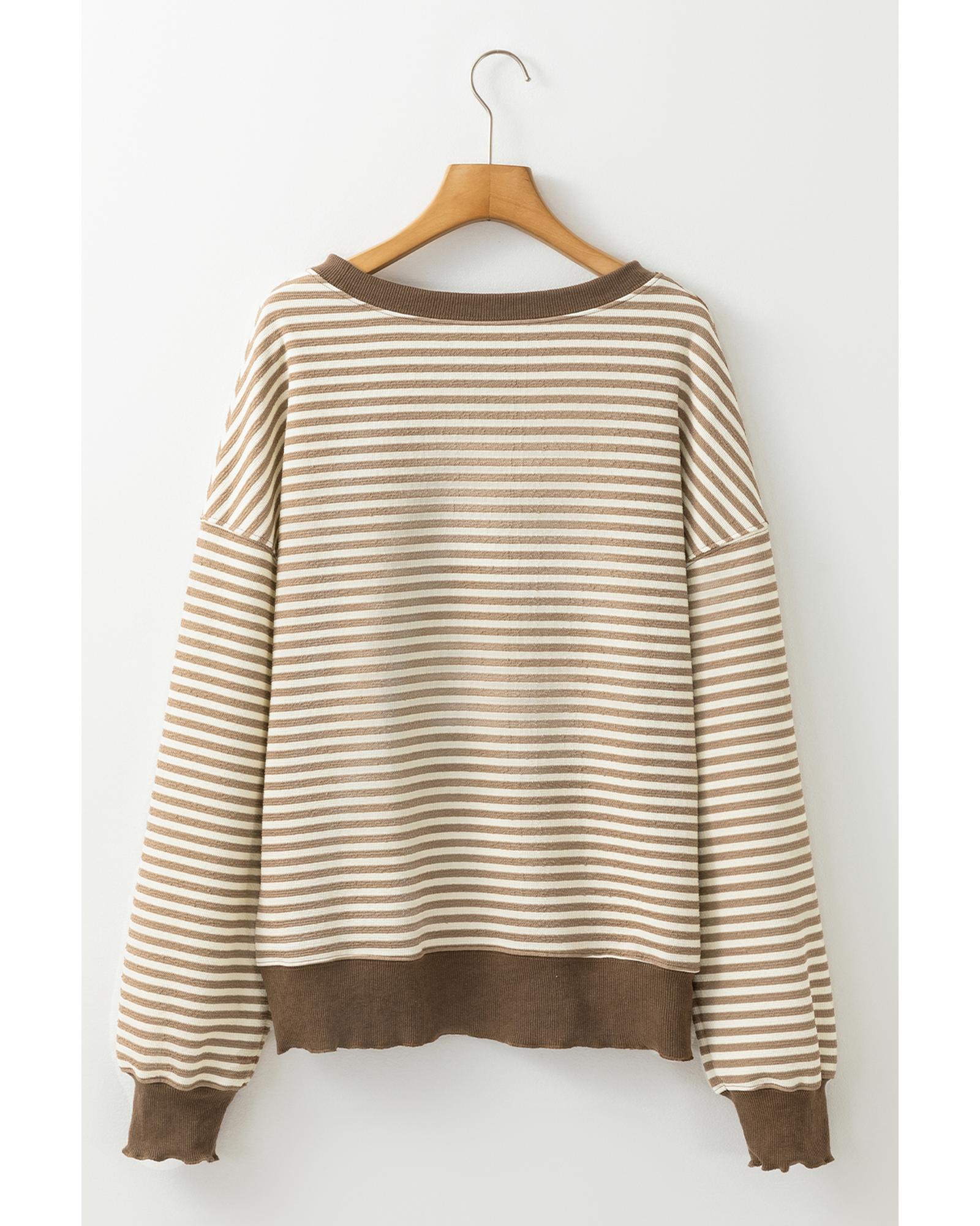 - Brown Stripe Loose Drop Shoulder Long Sleeve Top