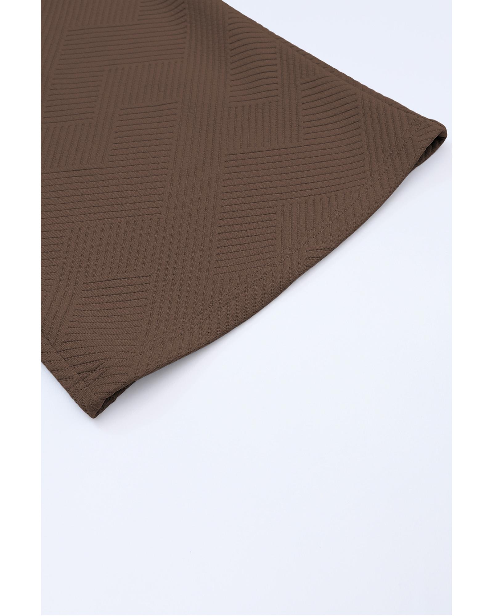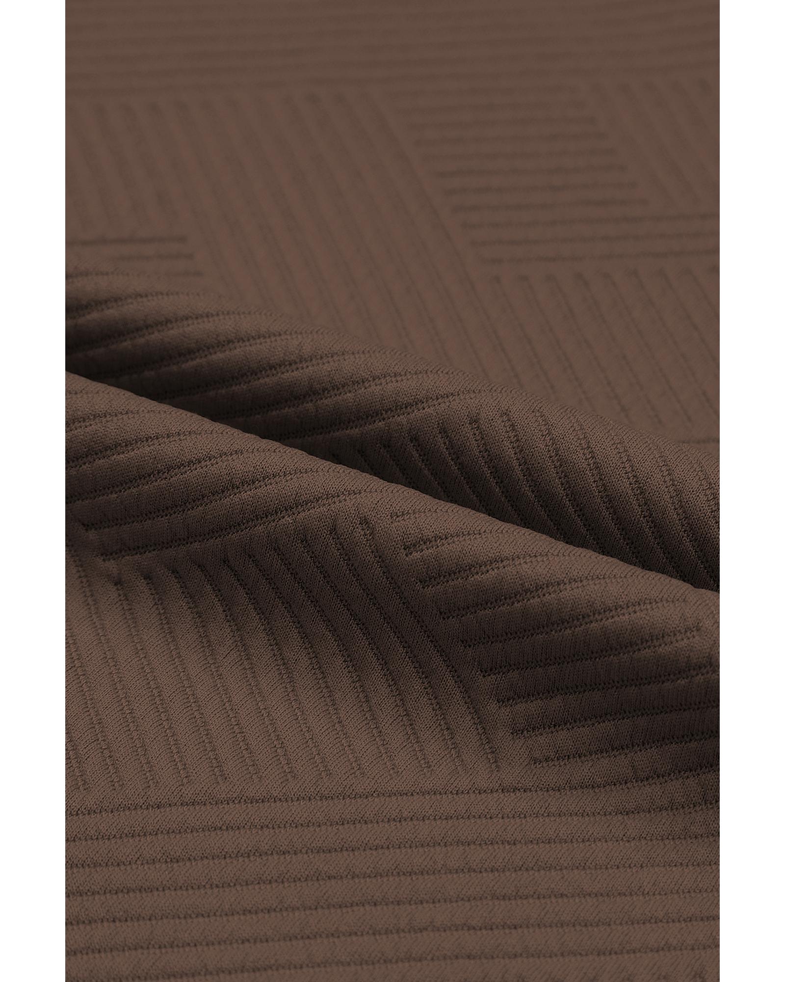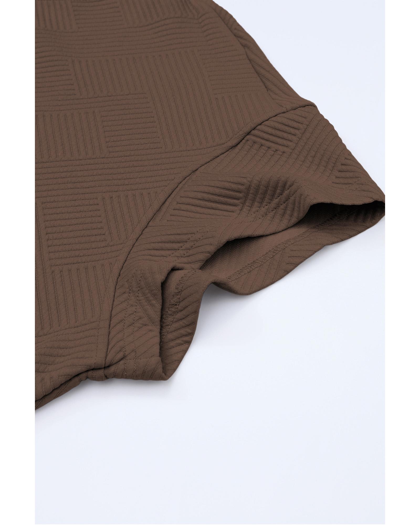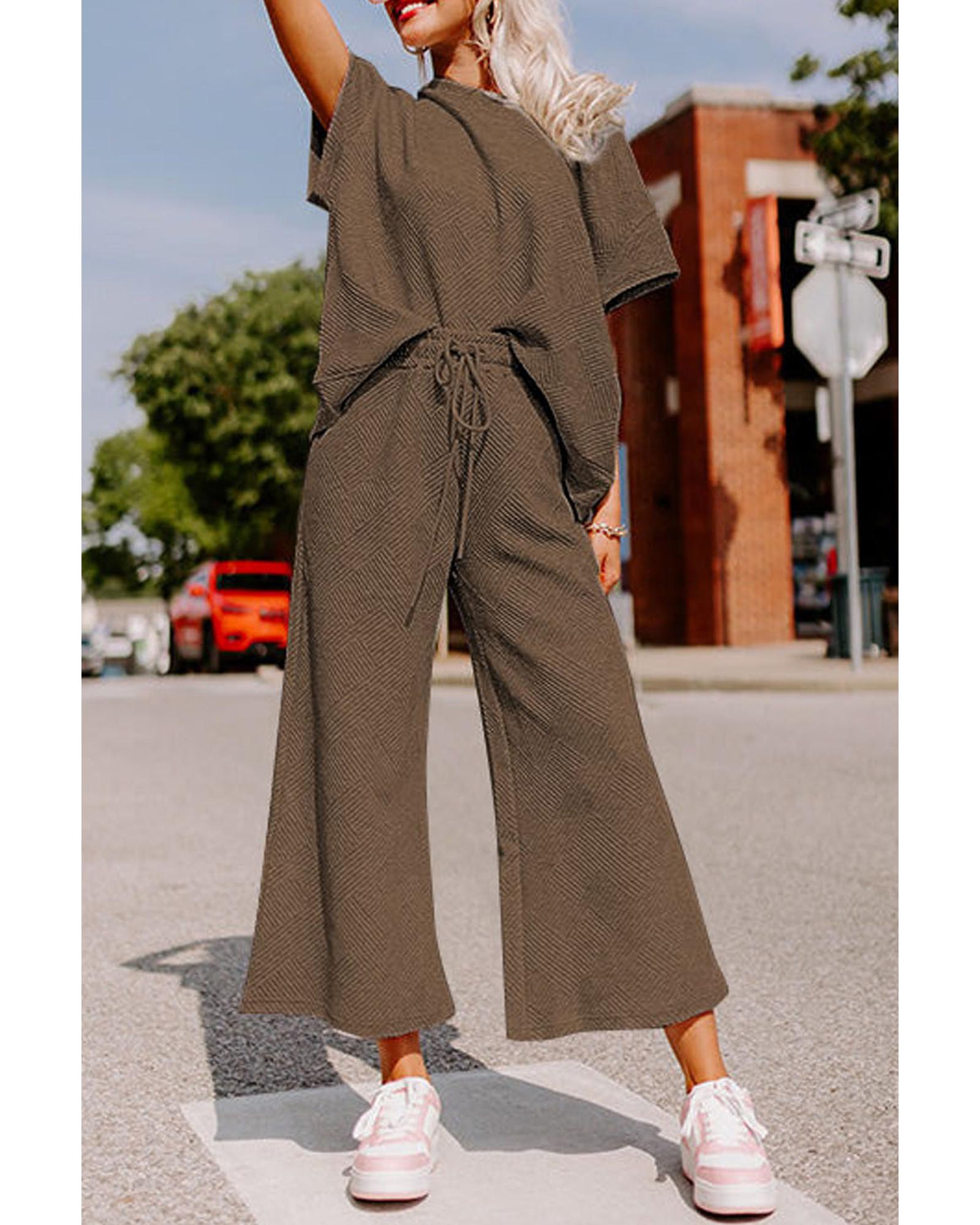 Brown Textured Loose Fit T Shirt and Drawstring Pants Set – S