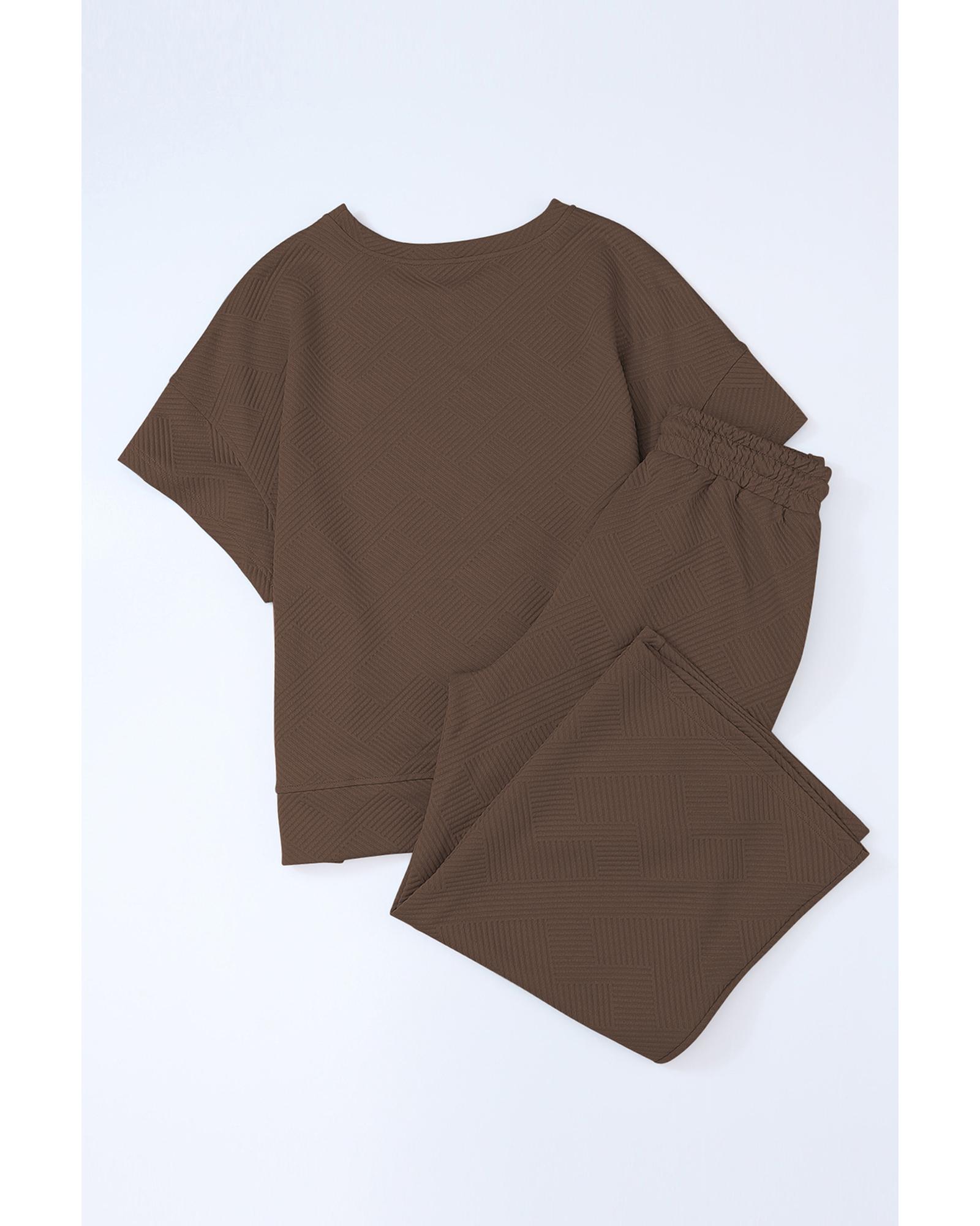 Brown Textured Loose Fit T Shirt and Drawstring Pants Set – XL