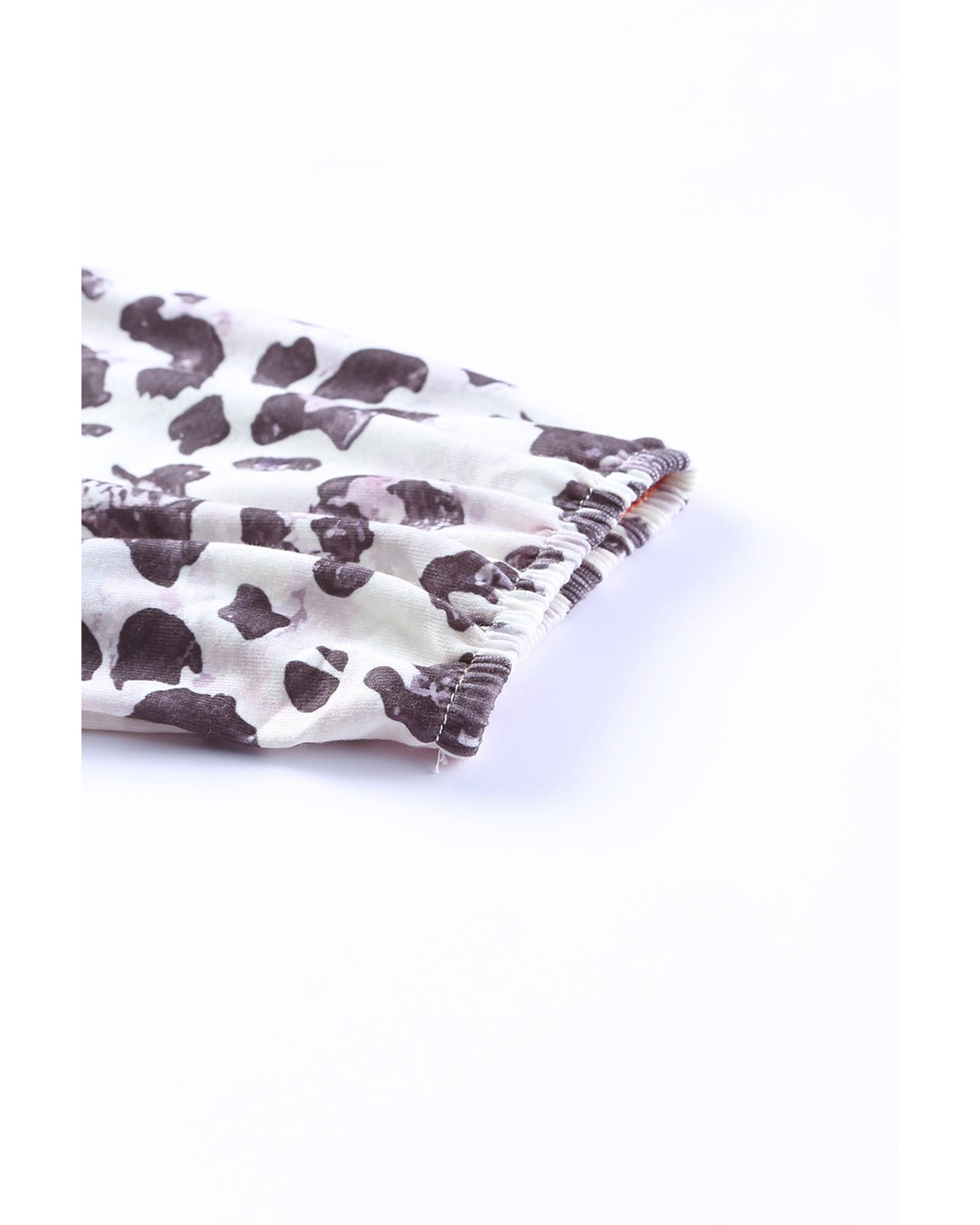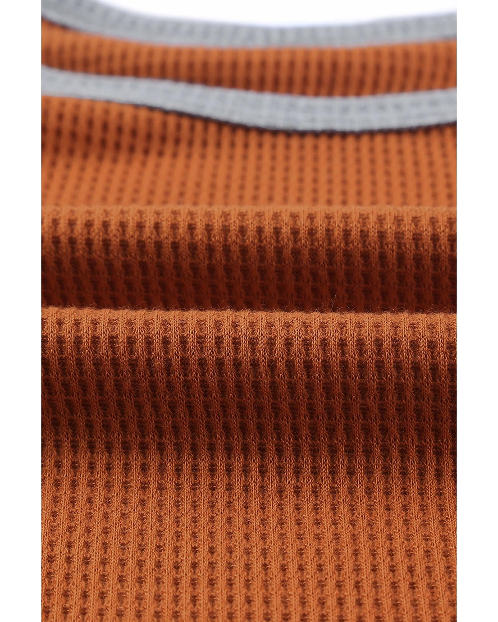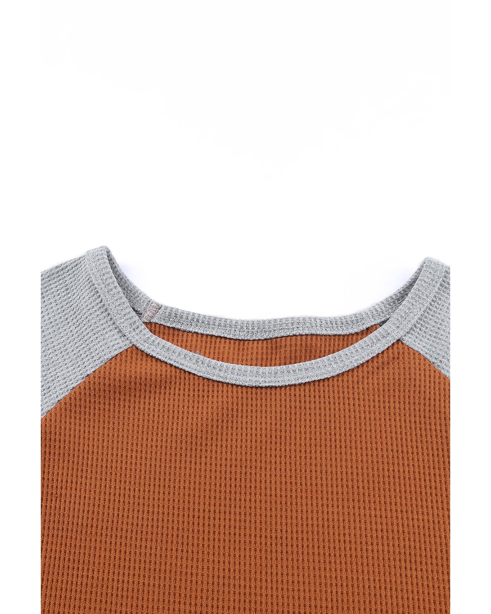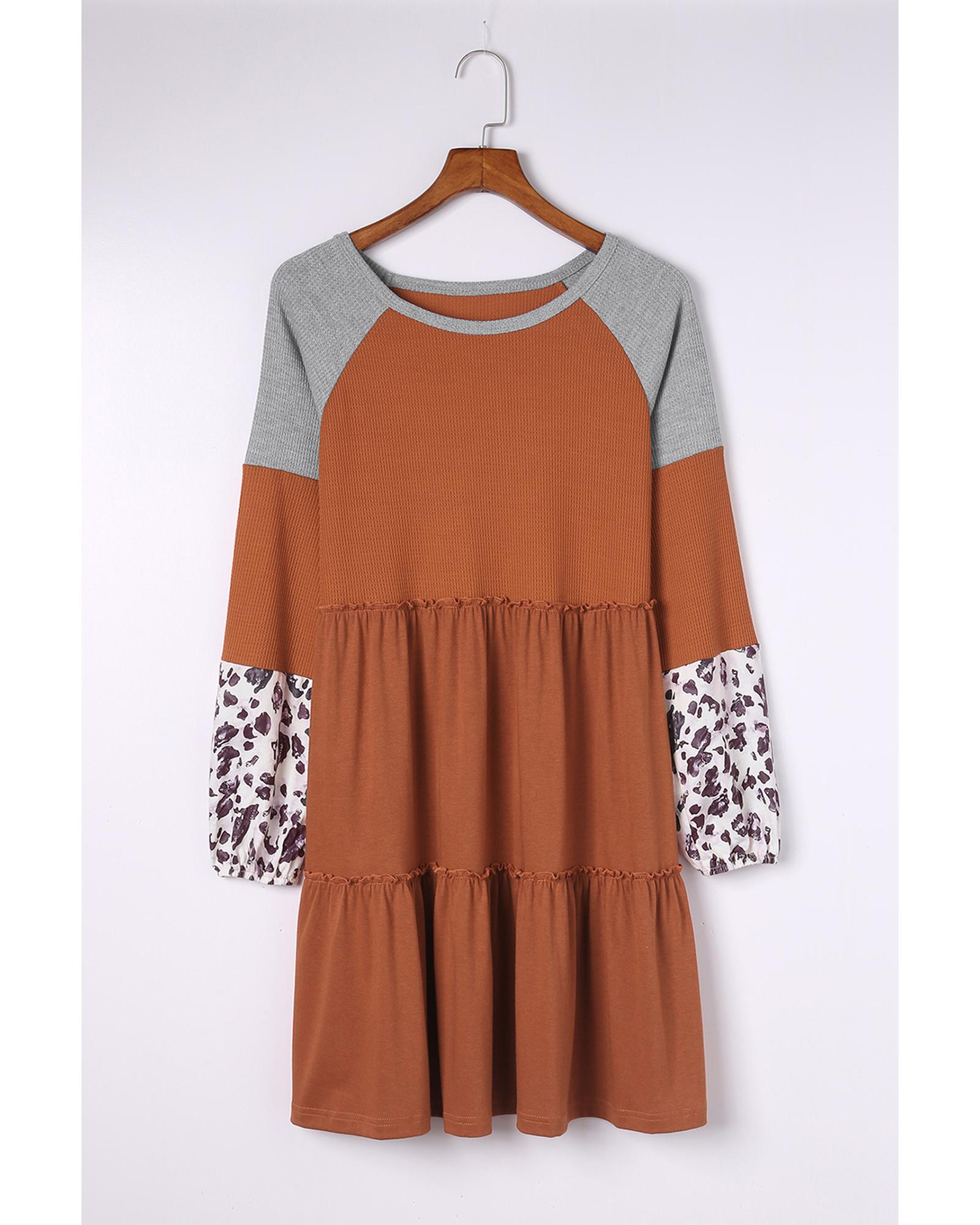 Brown Waffle Knit Leopard Patchwork Long Sleeve Dress – S