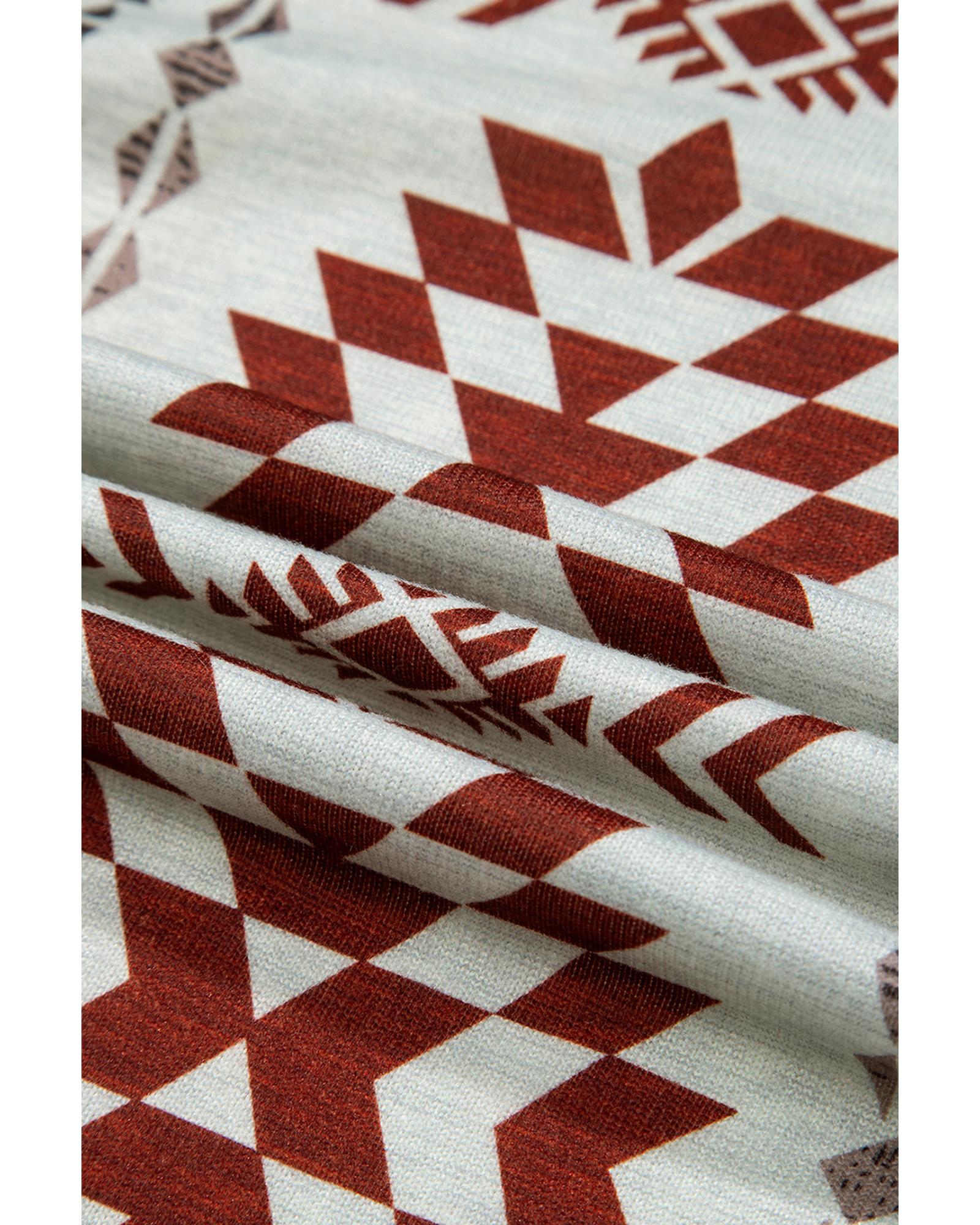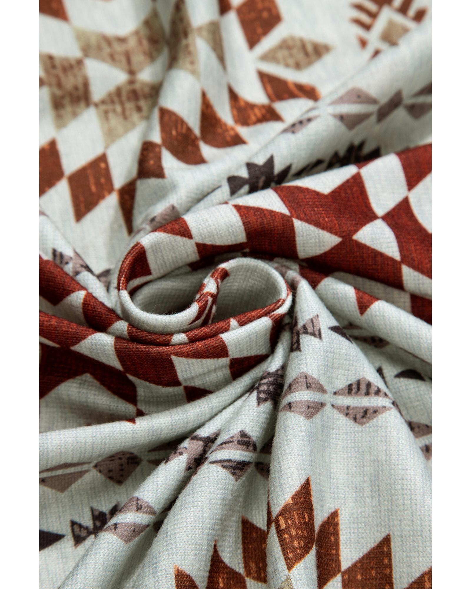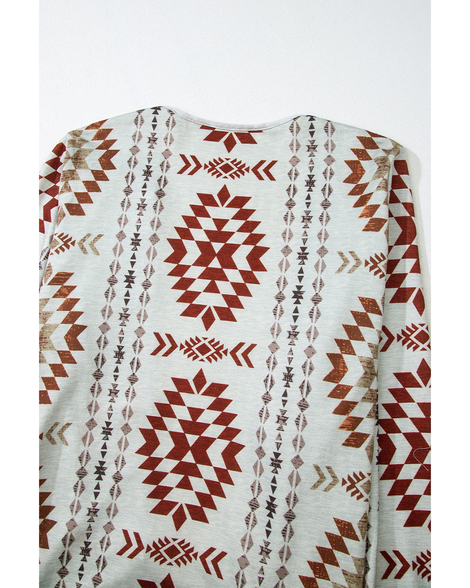 Brown Western Aztec Printed Open Front Long Cardigan – S
