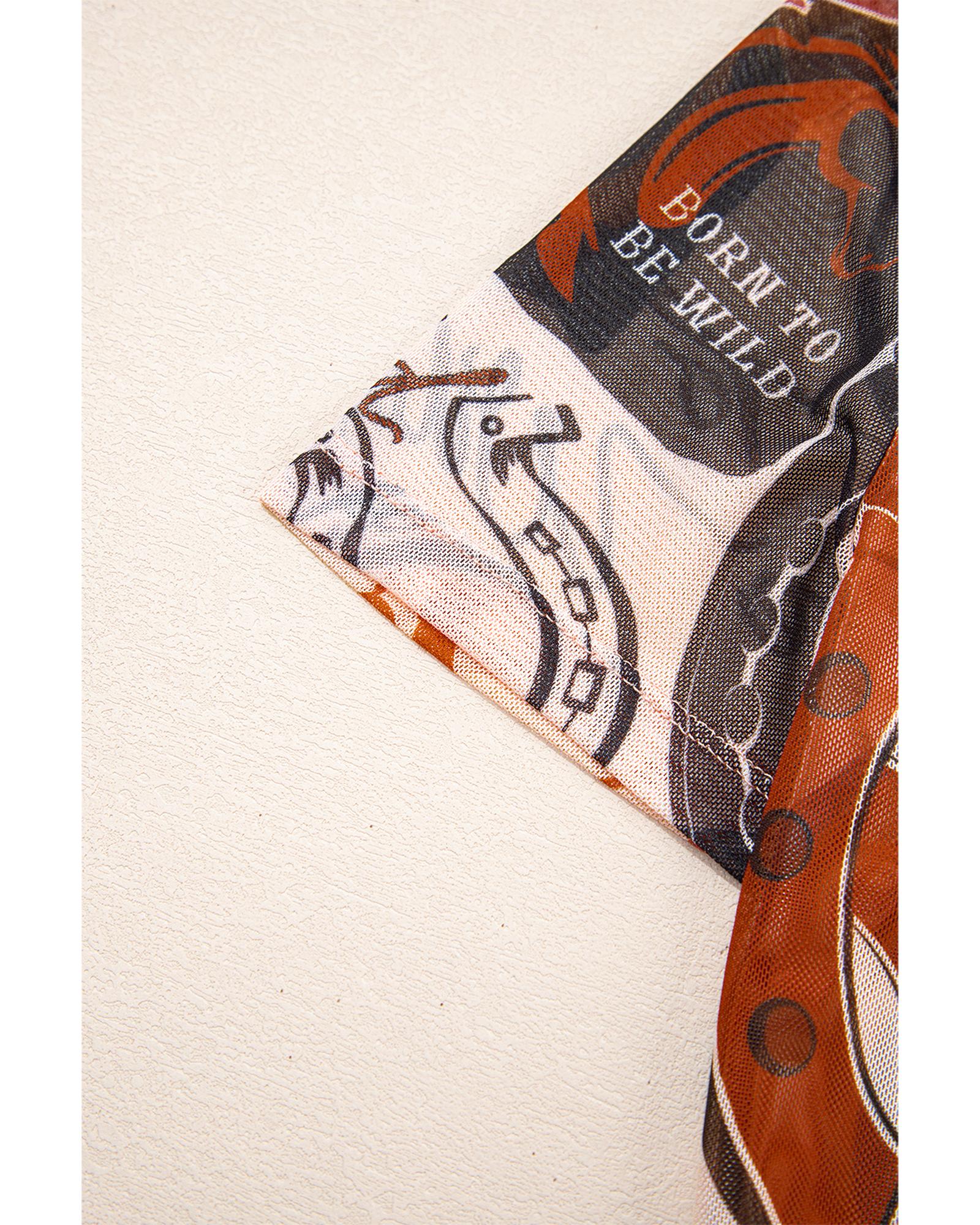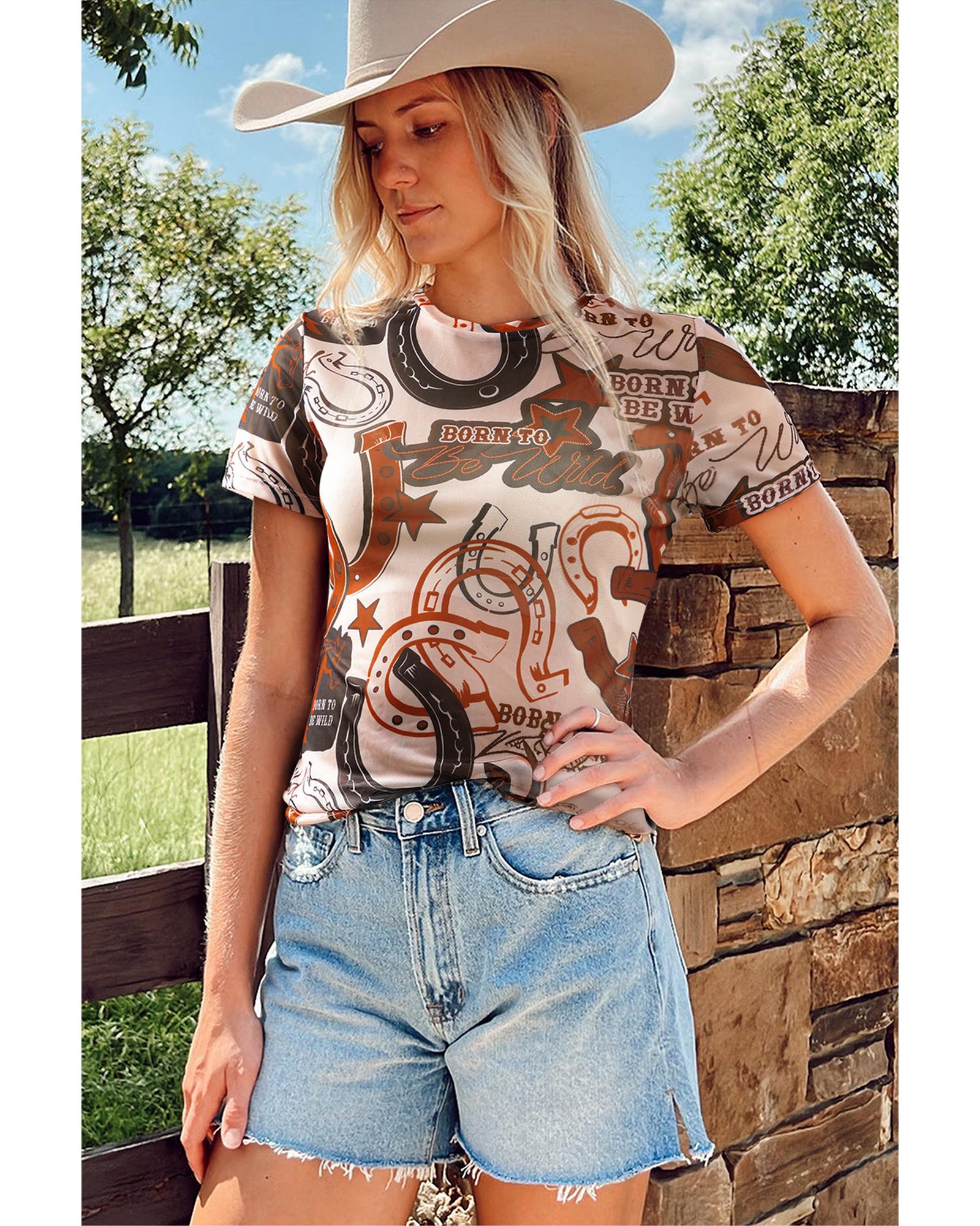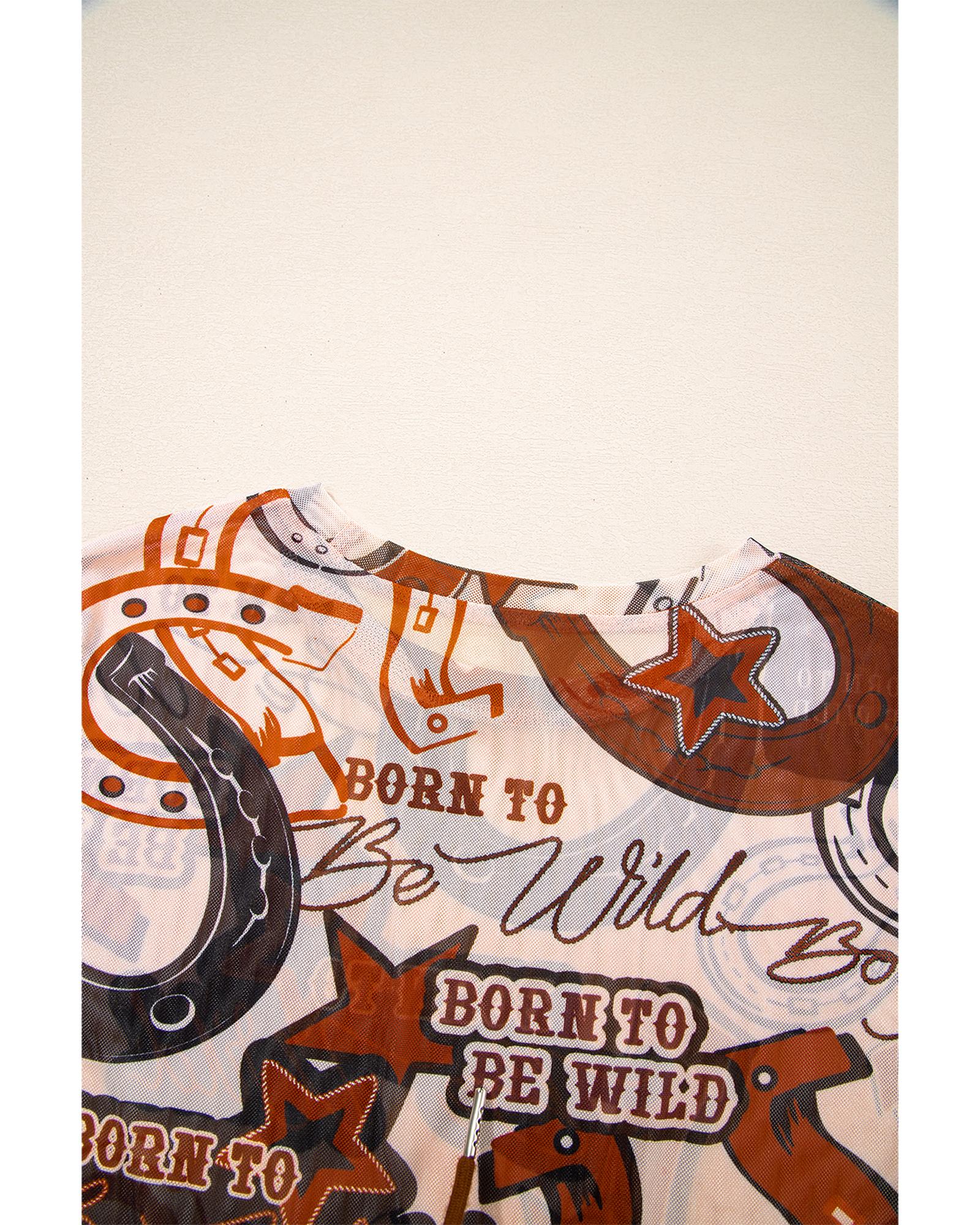 Brown Western Horseshoe Printed Mesh T Shirt – M