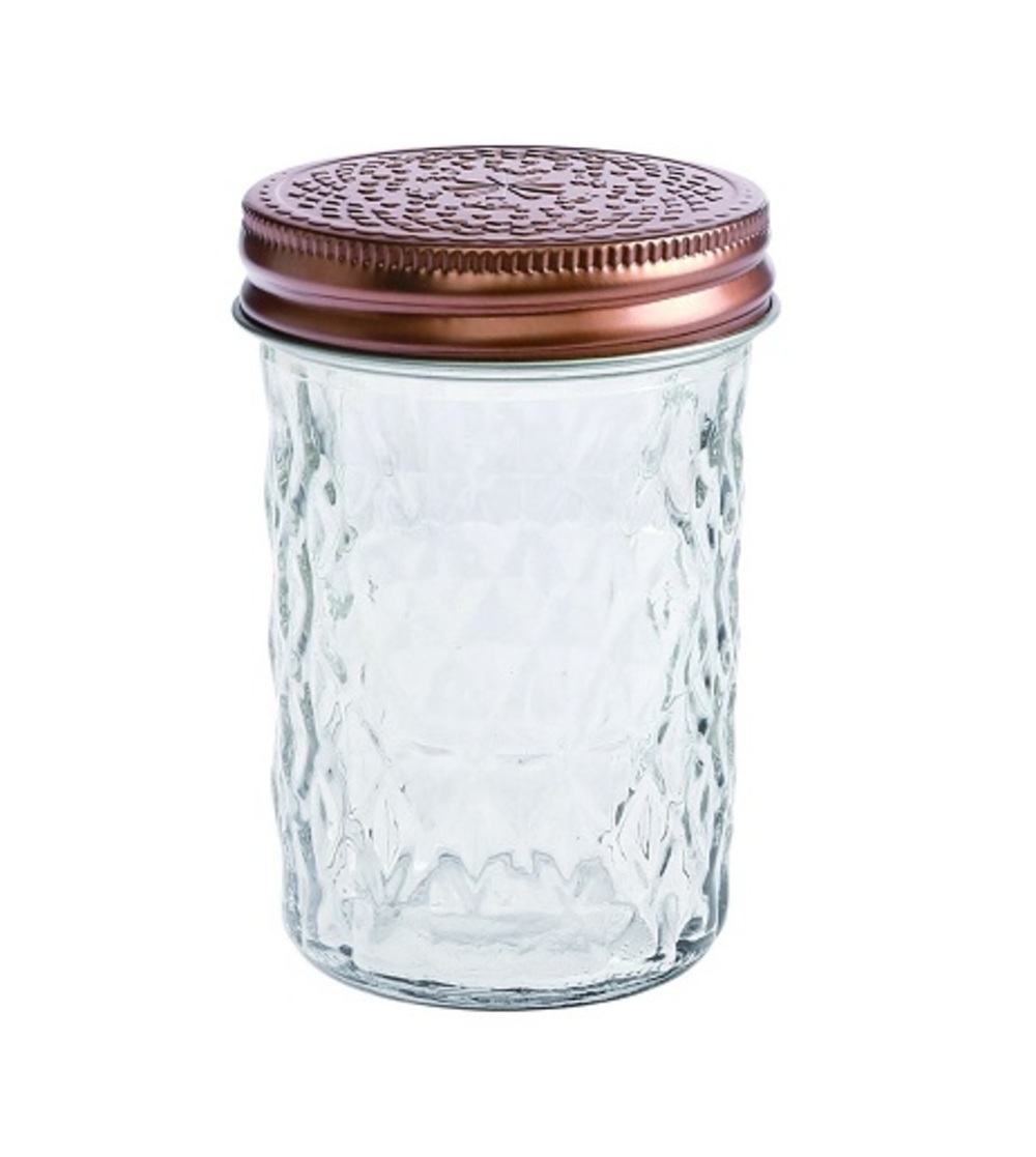 bulk 24 Medium Diamond Look Glass Jar w Rose Gold Lid 10cm
