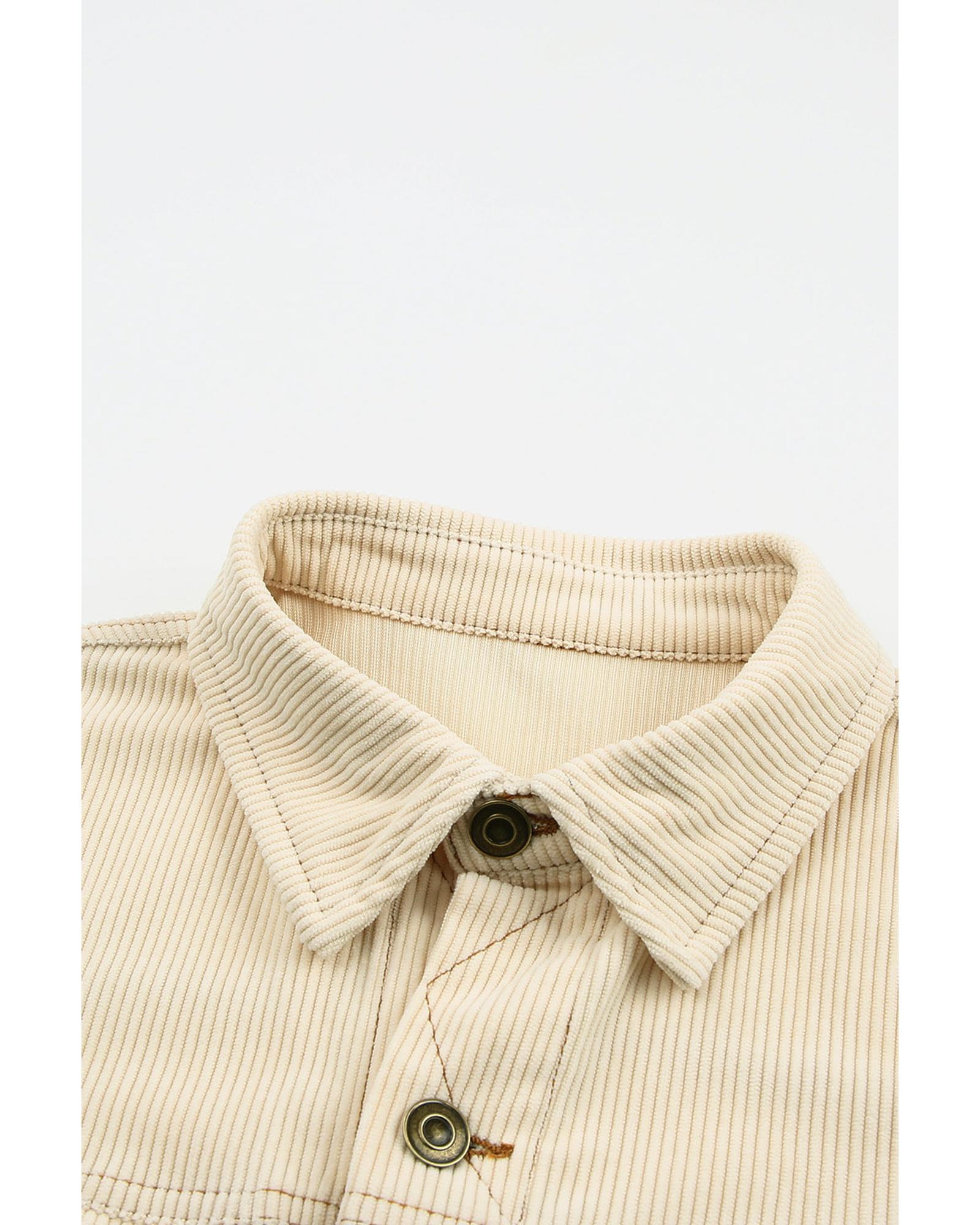 Button Up Pockets Striped Color Block Corduroy Jacket – XL