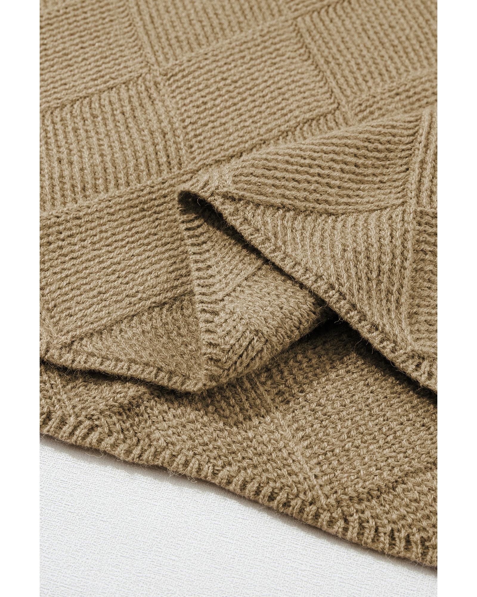Camel Checkered Textured Batwing Sleeve Sweater – M