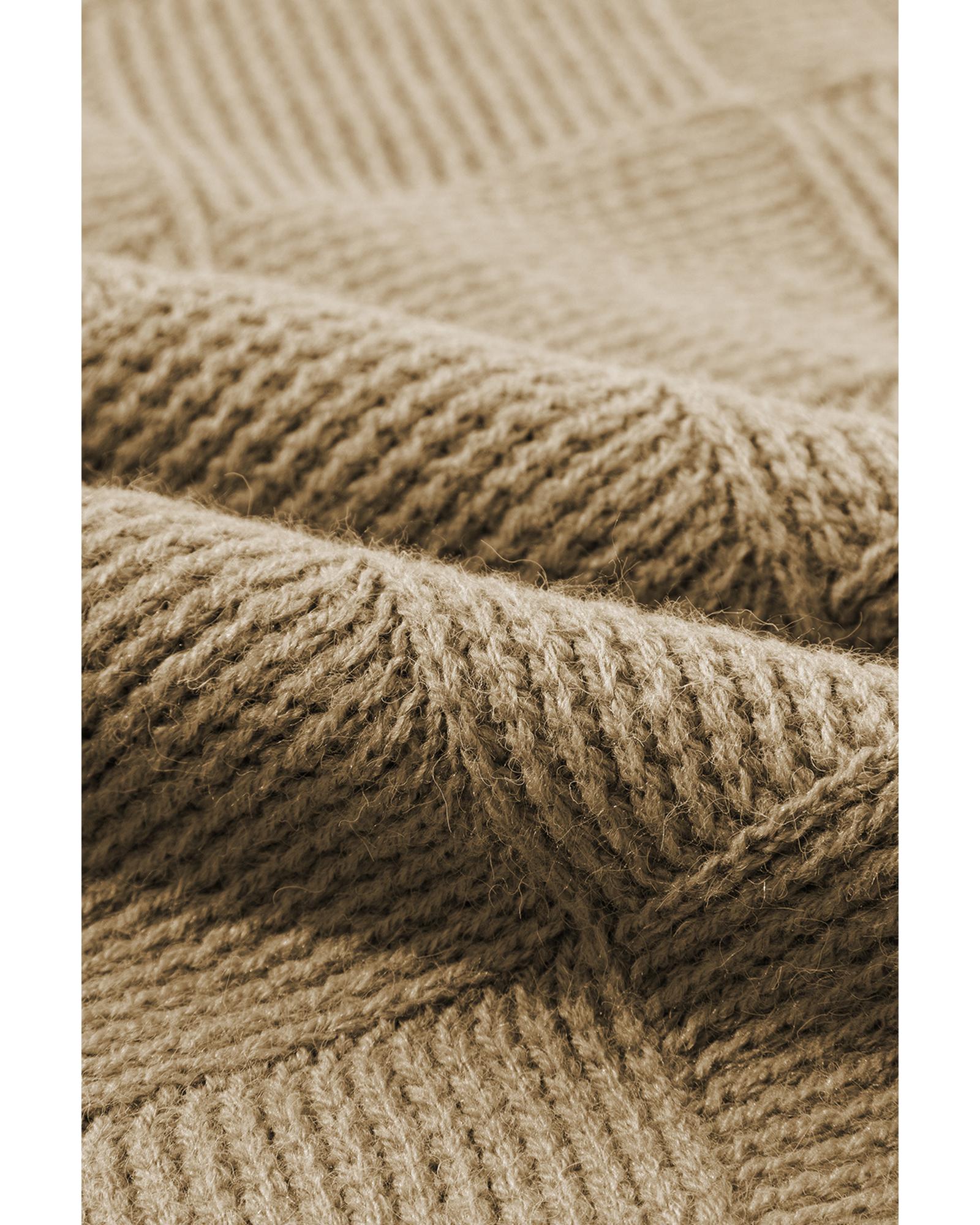 Camel Checkered Textured Batwing Sleeve Sweater – XL