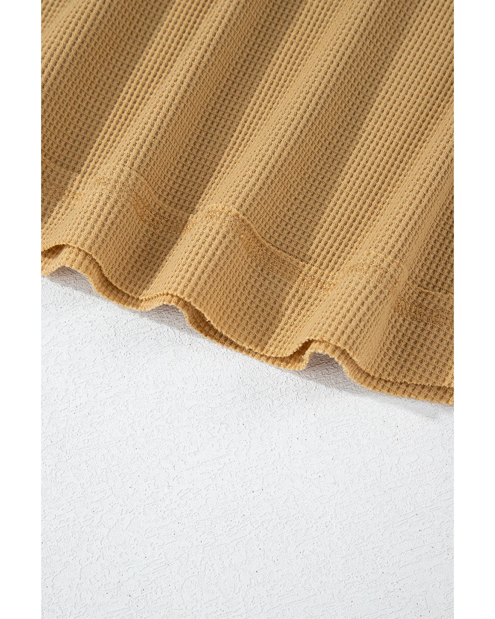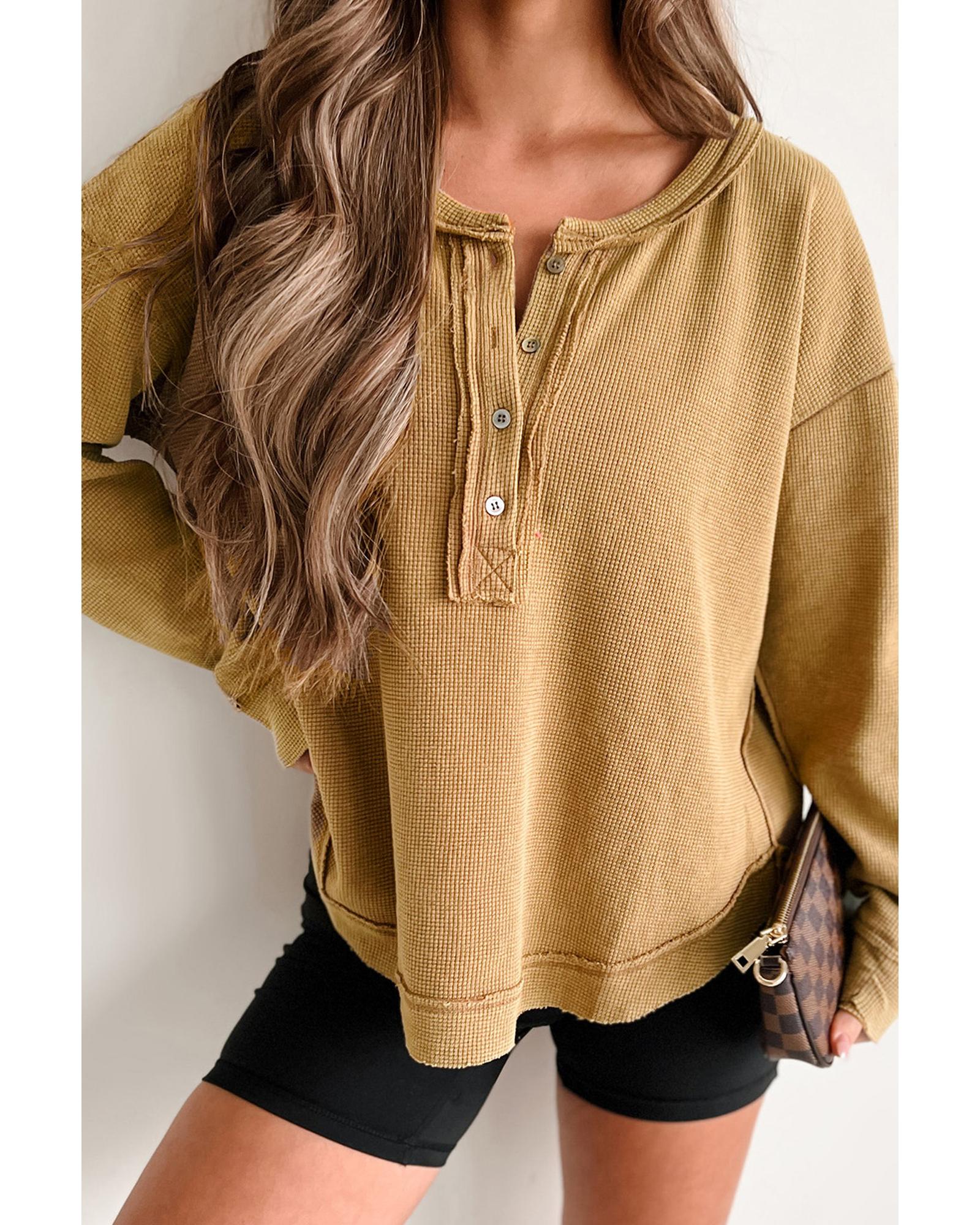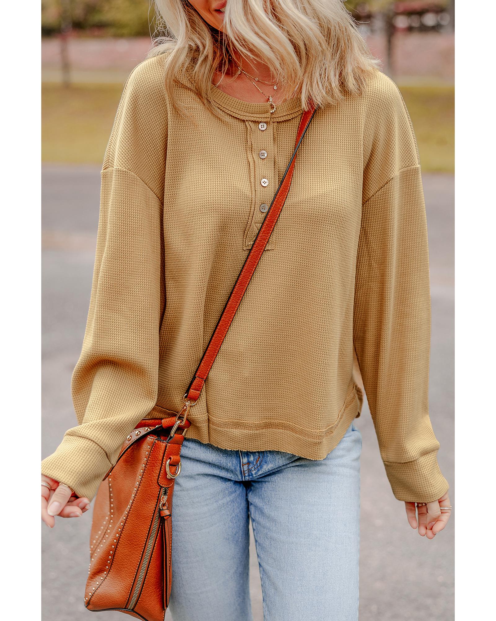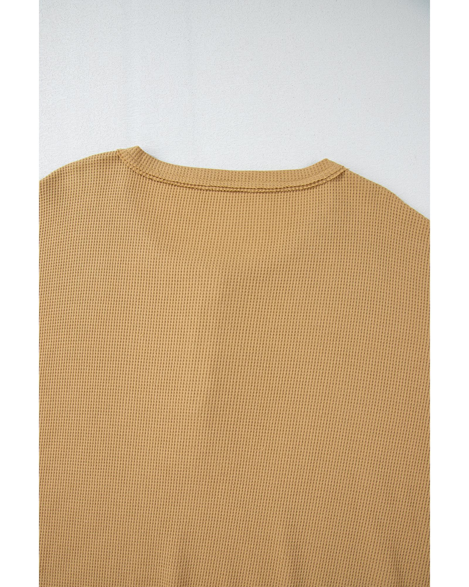 Camel Textured Knit Half Button Drop Shoulder Oversized Top – L