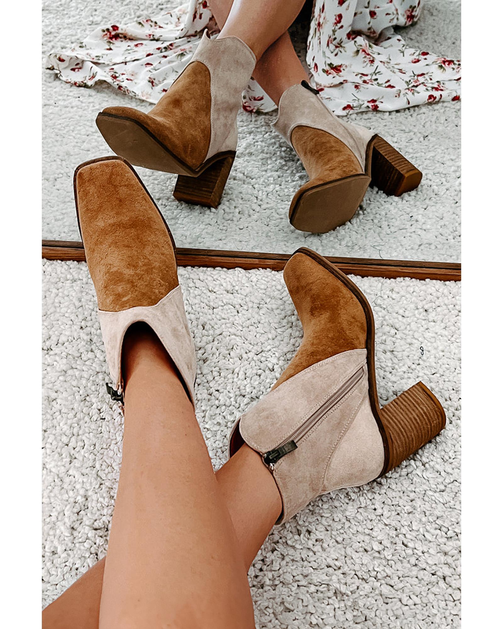 Camel Two Tone Faux Suede Square Toe Chunky Heel Boots – 37 EU