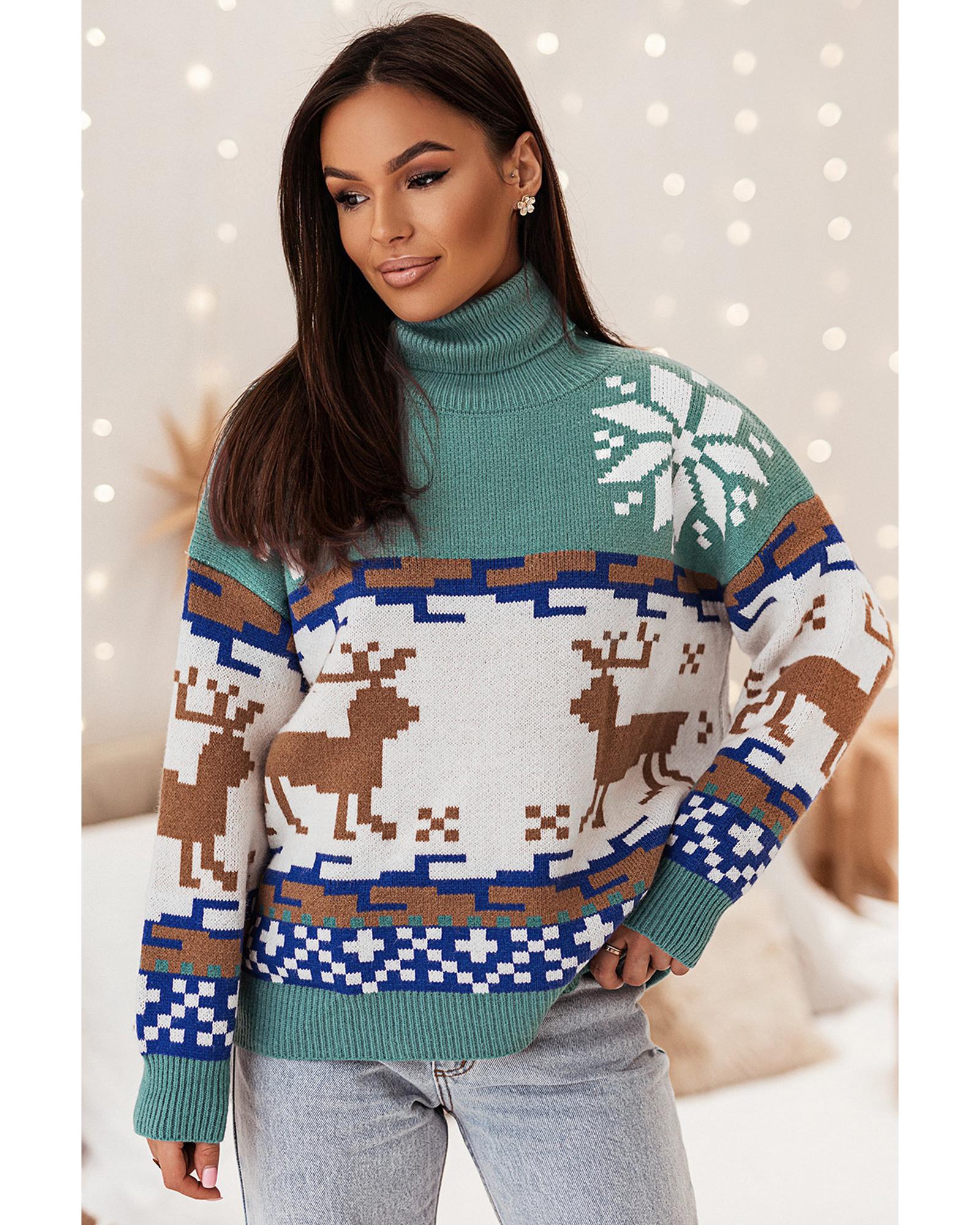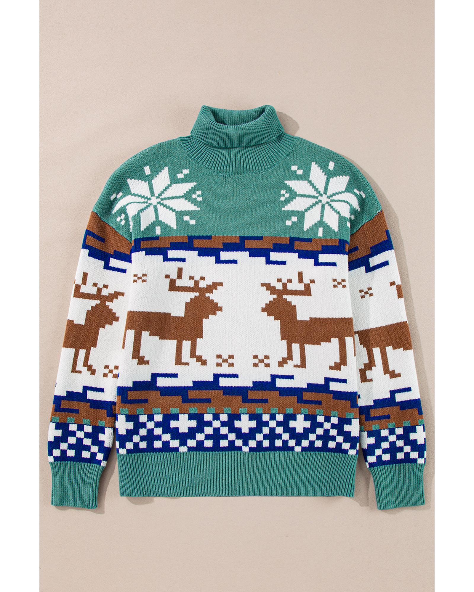 Canton Christmas Reindeer Snowflake Colorblock Turtleneck Sweater – L