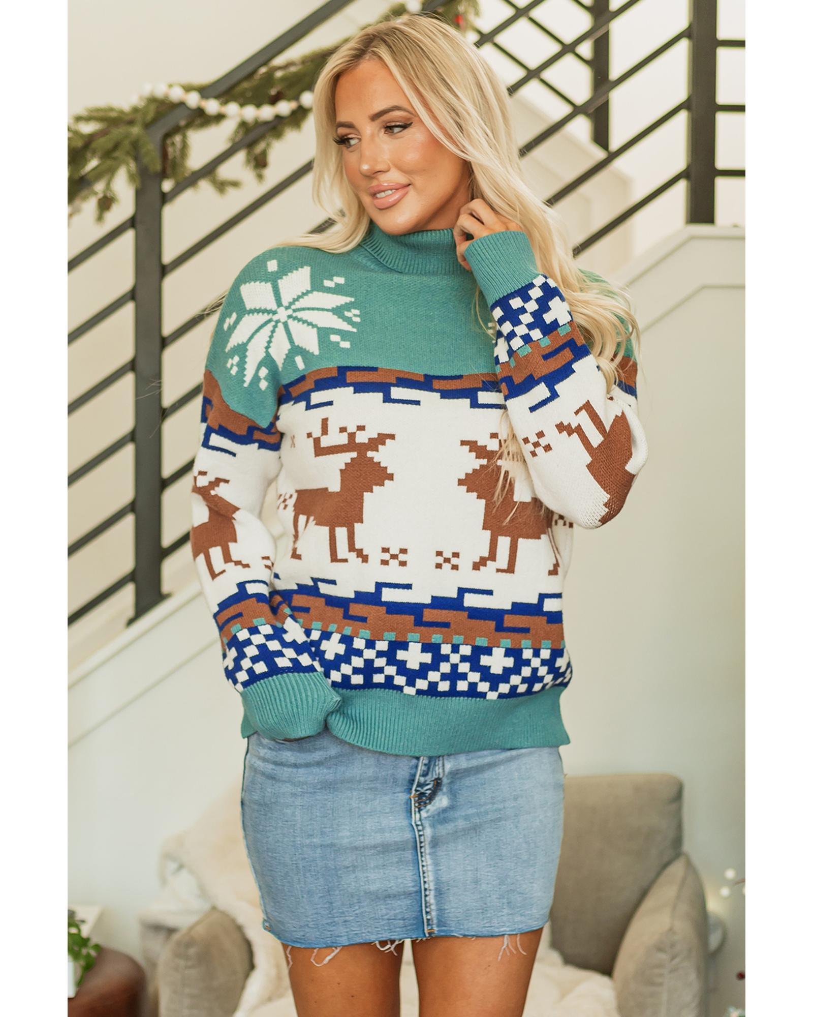 Canton Christmas Reindeer Snowflake Colorblock Turtleneck Sweater – XL