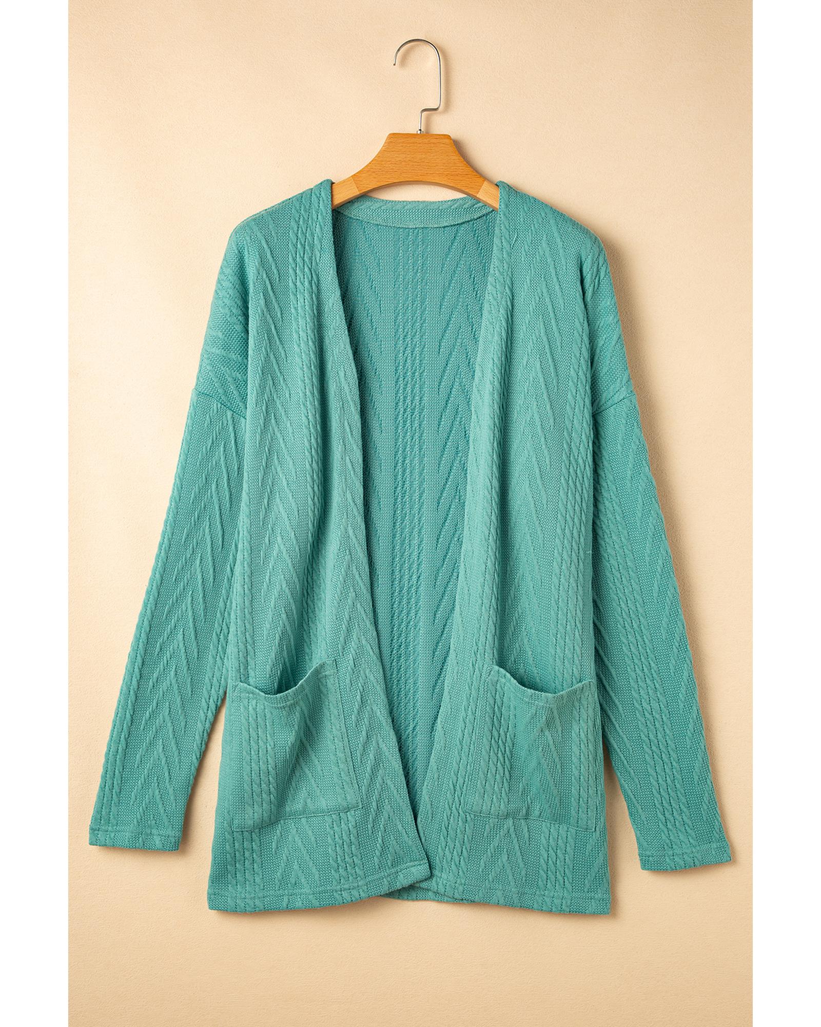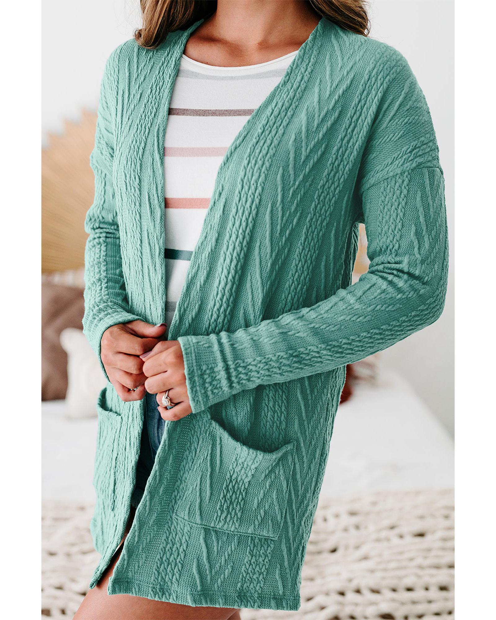 Canton Solid Textured Open Front Cardigan with Pocket – M