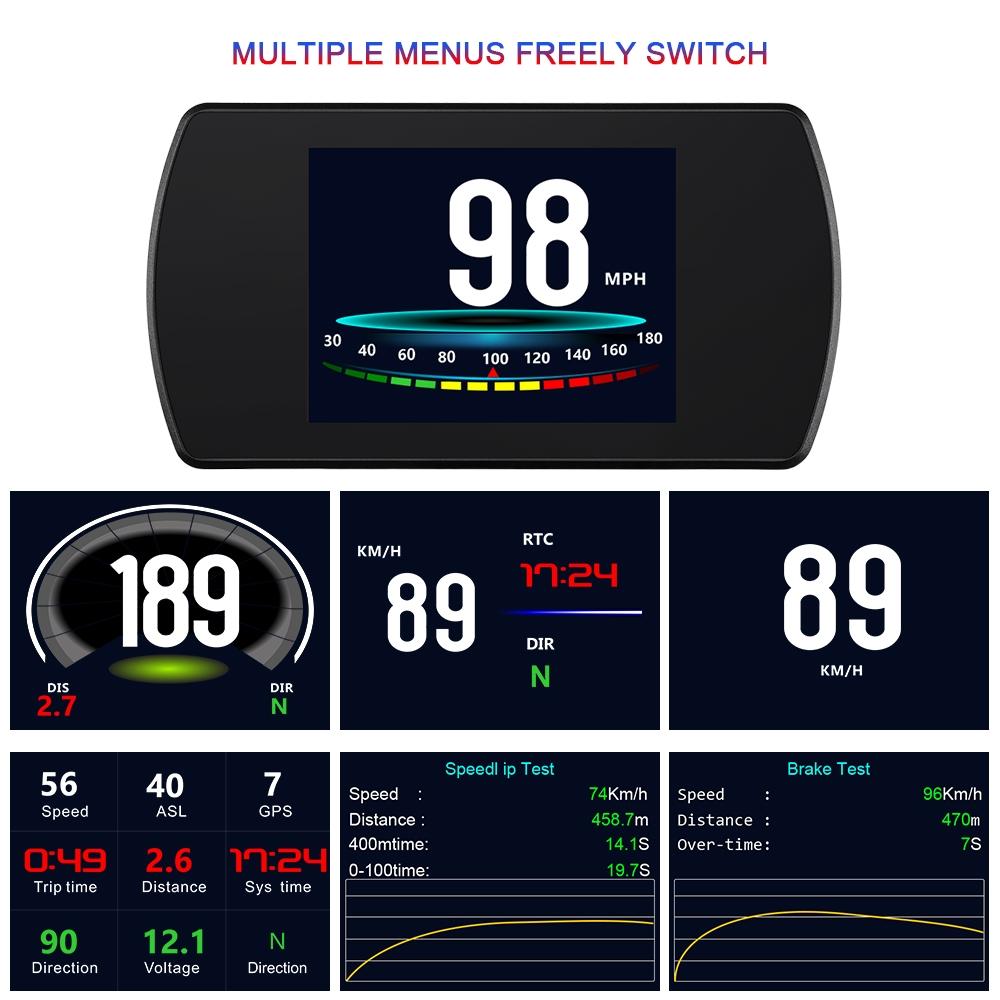 • Rich contents: driving speed, voltage, single driving distance, driving time, over speed alarm, switch between kilometers and miles