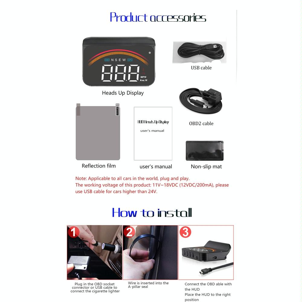 • 1 x Car Obd2 + Gps Head Up Display Speed Temperature Alarm