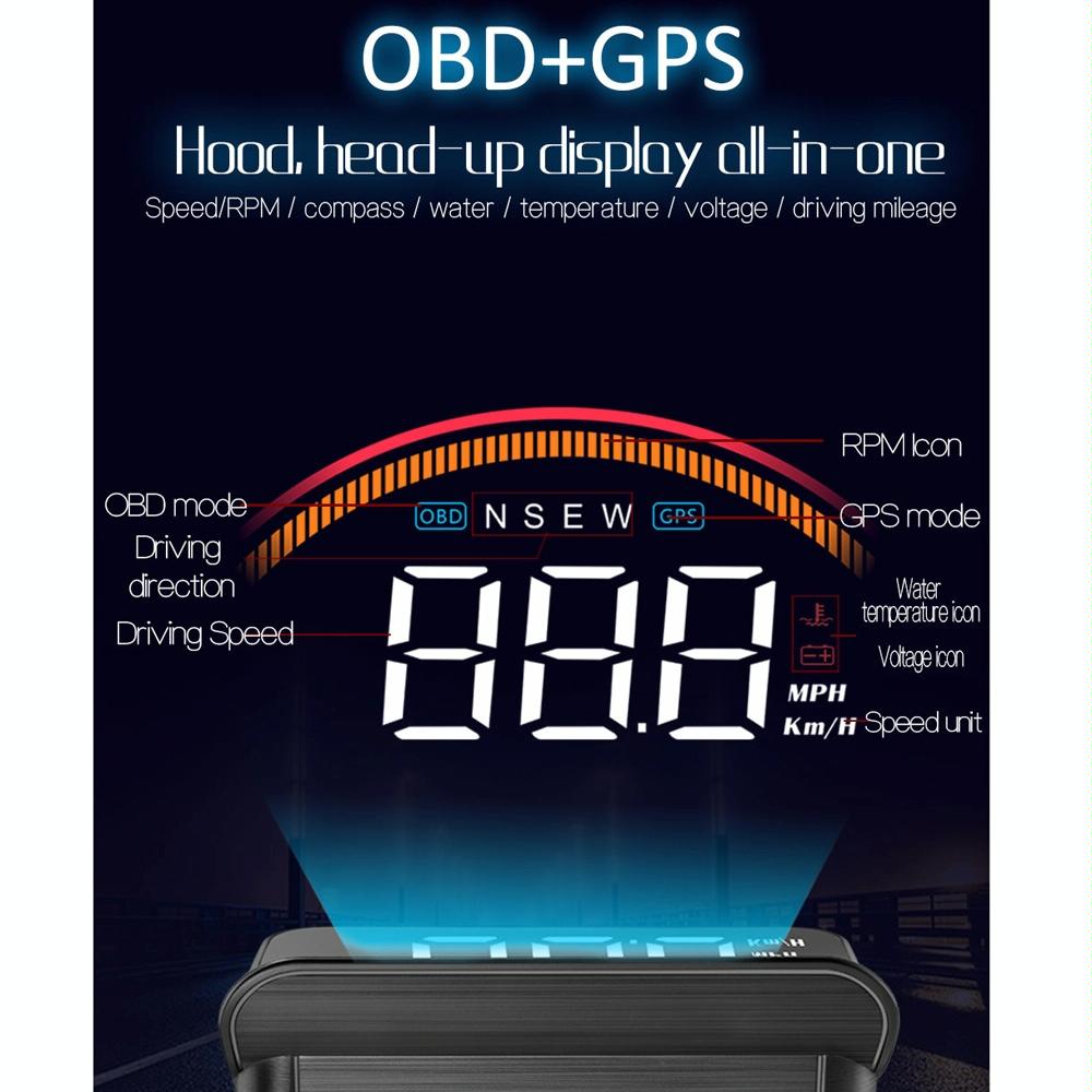 Car Obd2 + Gps Head Up Display Speed & Temperature Alarm
