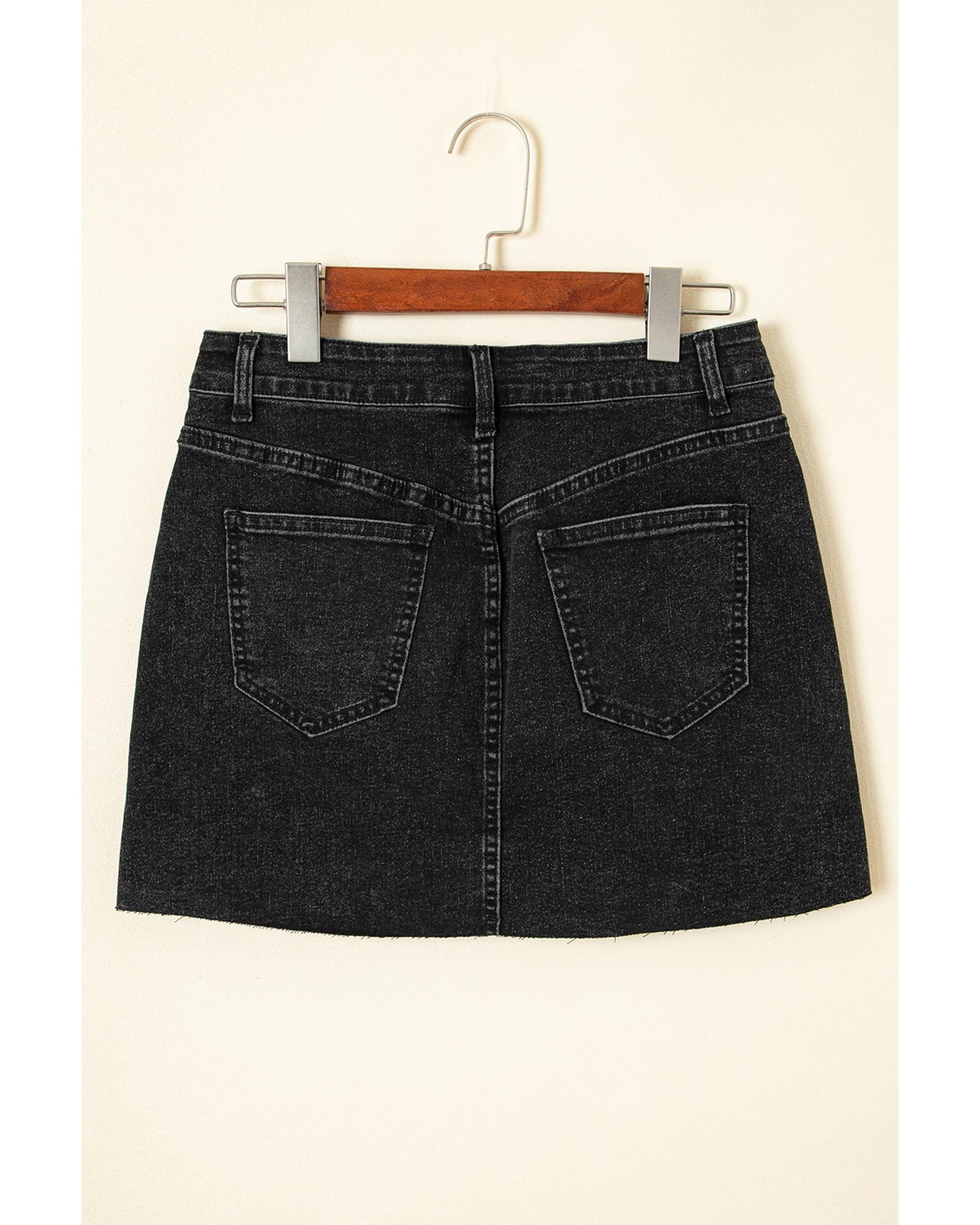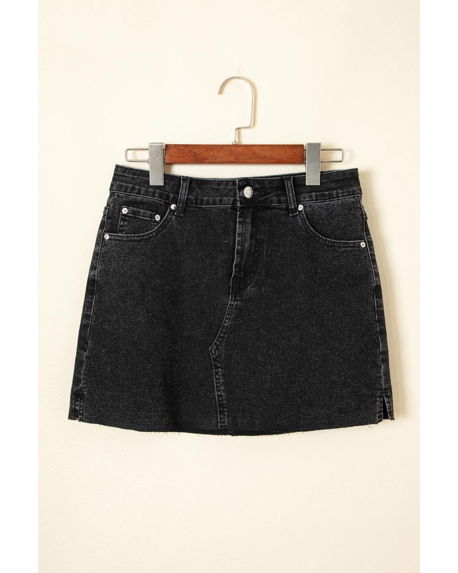 Carbon Grey Mineral Wash Ripped Raw Hem Denim Mini Skirt – 8 US