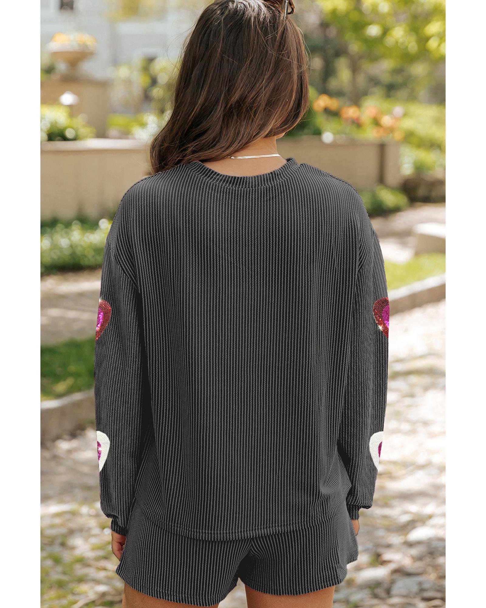 Carbon Grey Valentine Sequin Heart Corded Pullover and Shorts Set – M