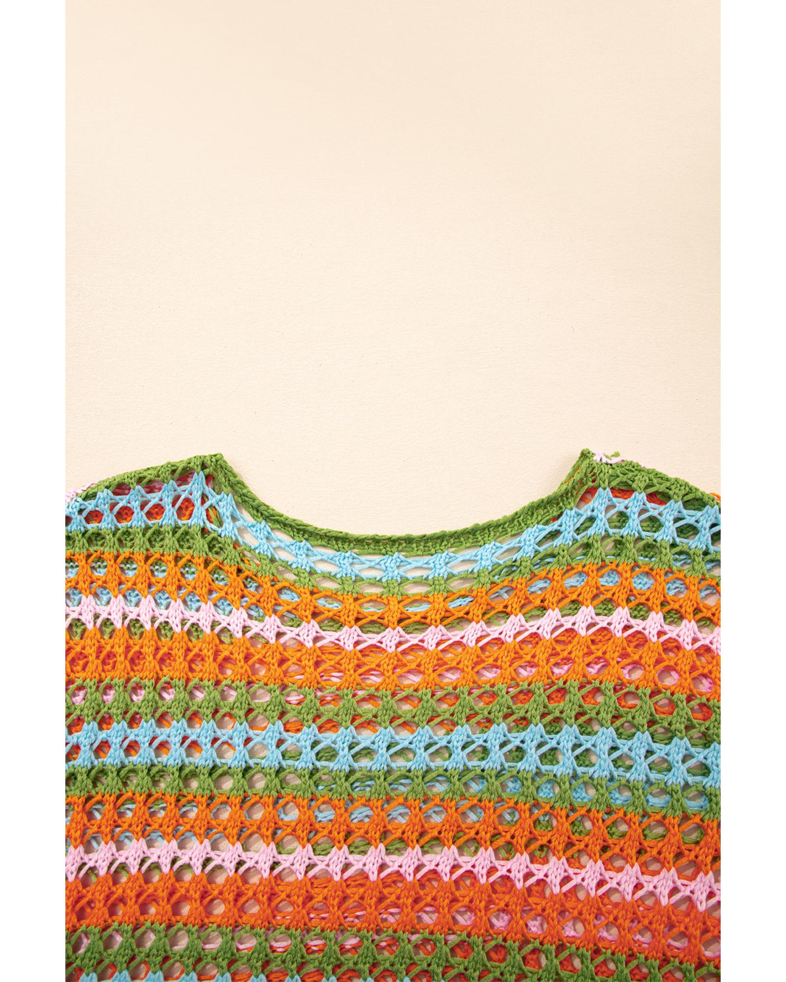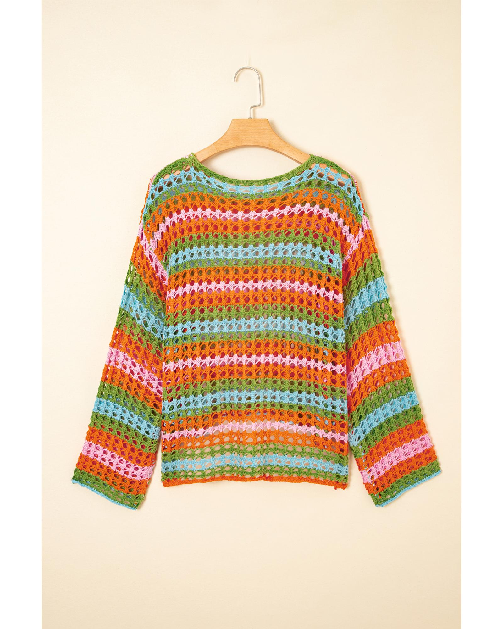 Carrot Multi Stripe Open Knit Sweater Beach Cover Up - L