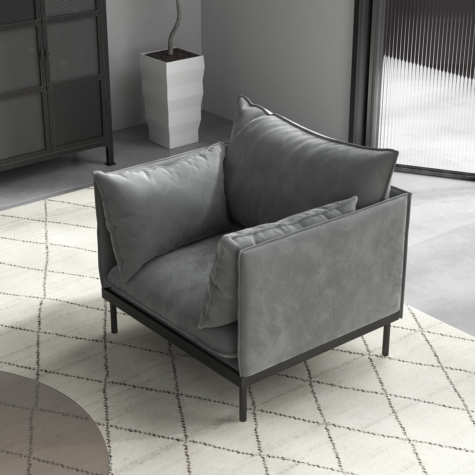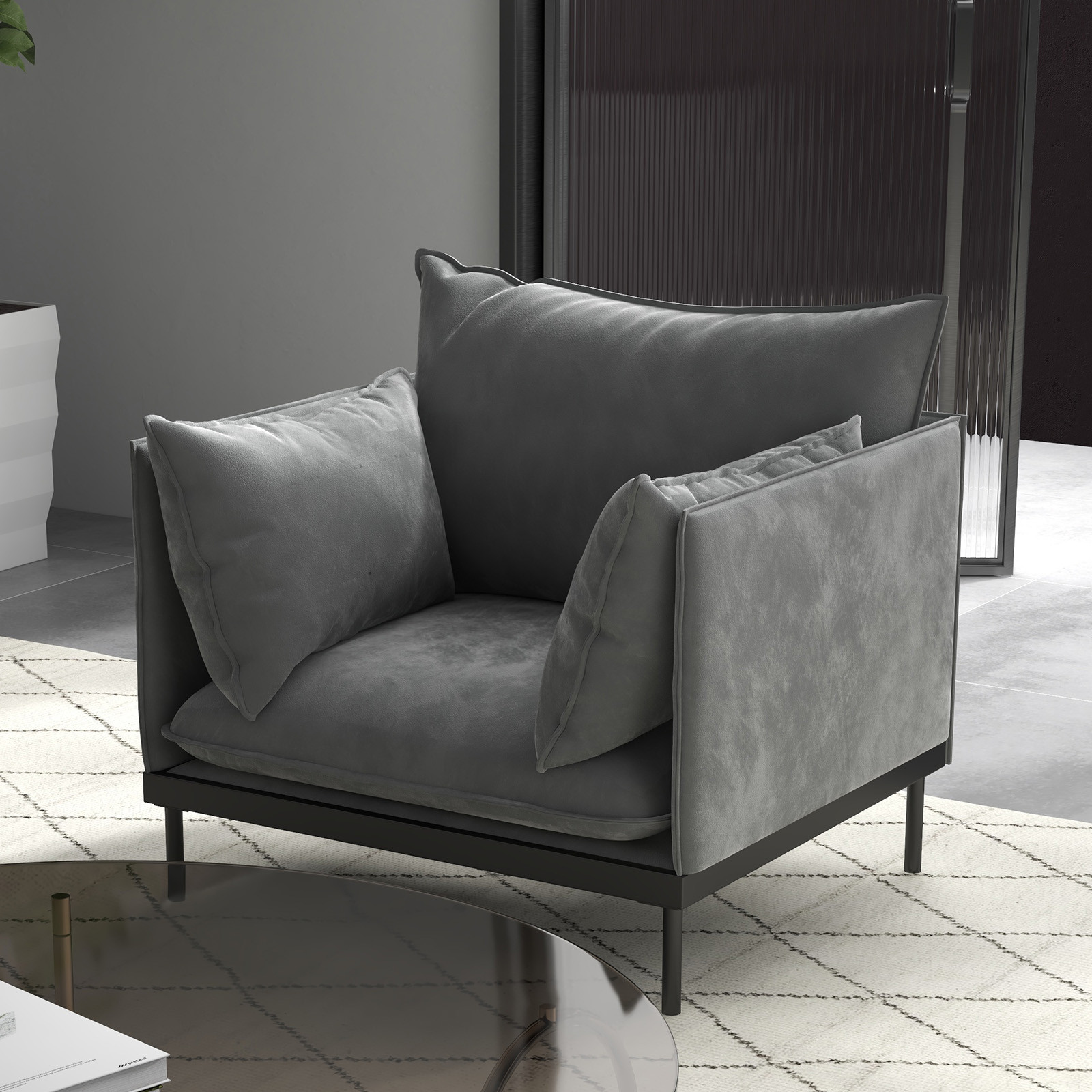 Casa Decor Camilla Luxury Upholstered 1 Seater Sofa Armchair Light Grey