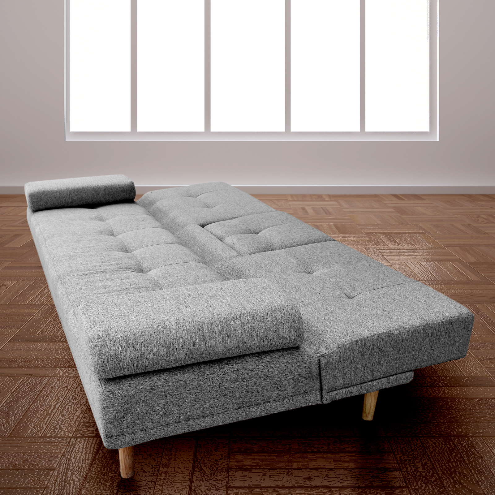 Casa Decor Mendoza 2 in 1 Sofa Bed Couch Grey Pull Down Cupholder 3 Seats Futon