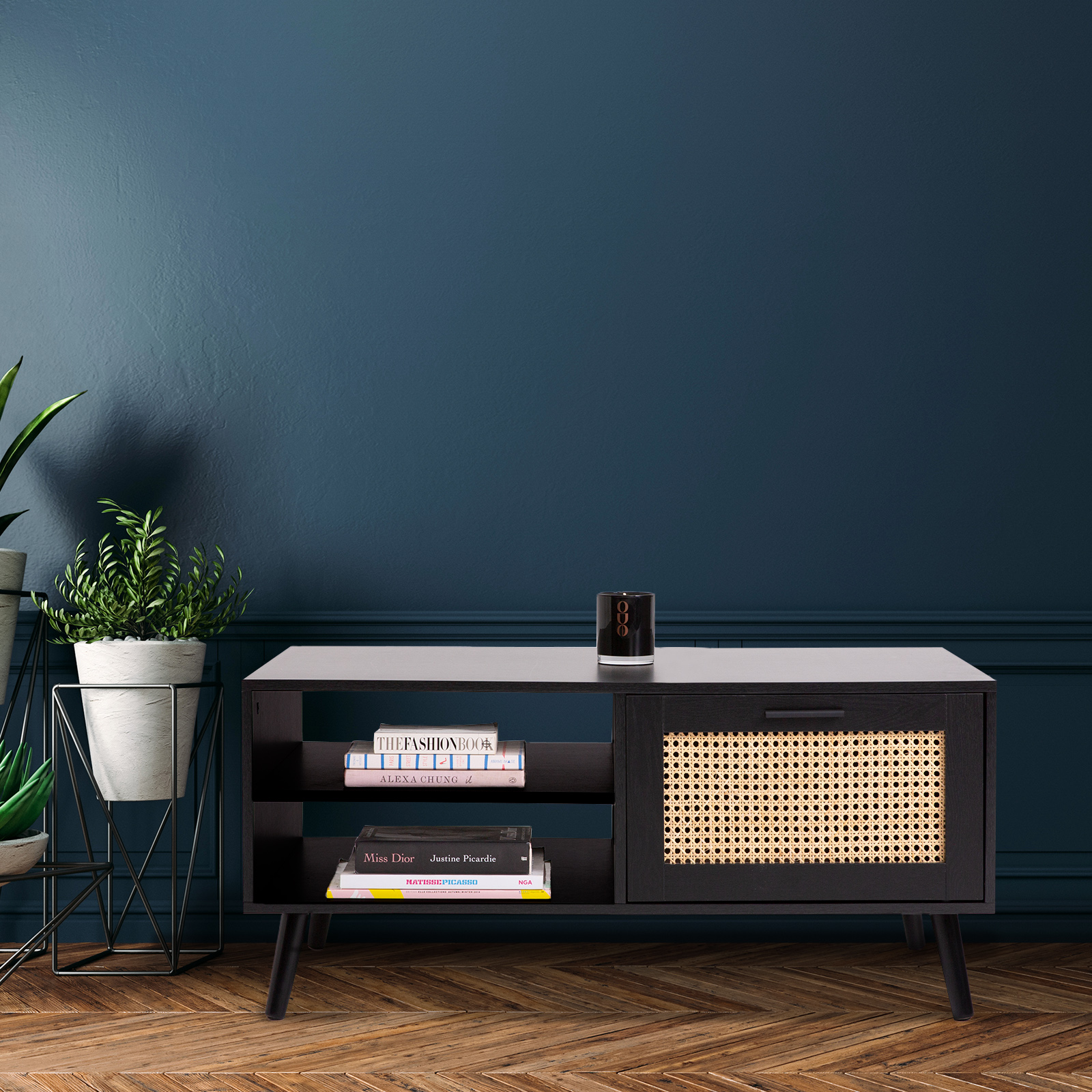 The two open shelves are perfect for storage of coffee table books, personal decor items and the remote control, while the large drawer with rattan feature panel gives you plenty of space to keep your living room organized.