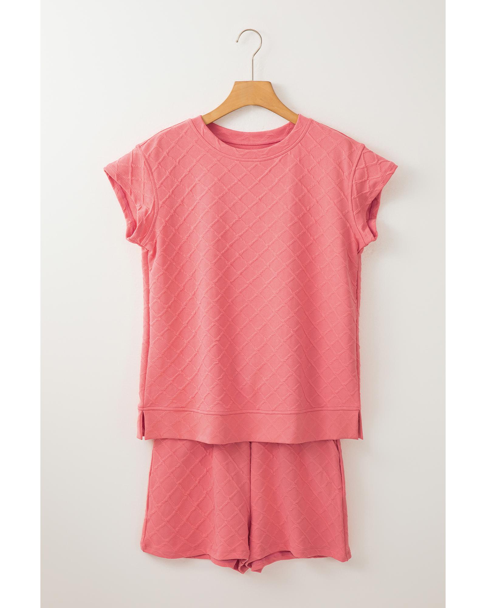 Casual Checkered Textured Tee and Drawstring Shorts – L