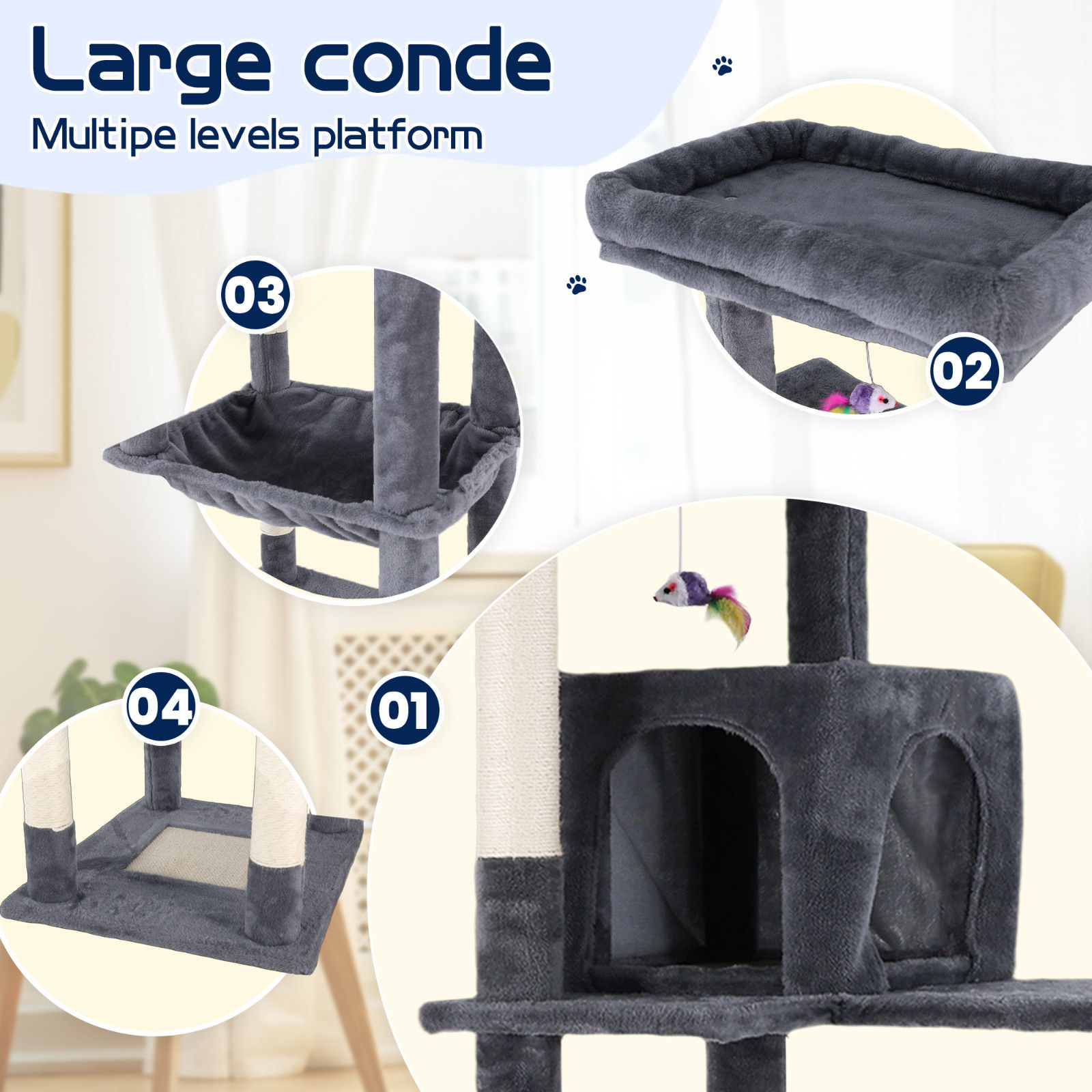 Cat Tower Tree Condo Scratching Post Dark Grey 142cm