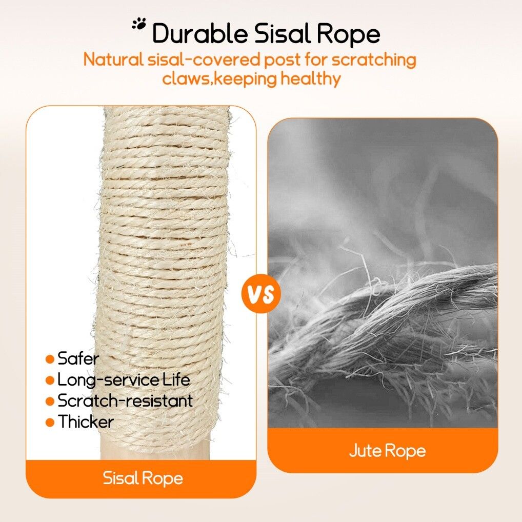 - Comfort Meets Fun: Equipped with plush cushions, sisal posts, and playful dangling balls, ensuring a blend of comfort and entertainment.