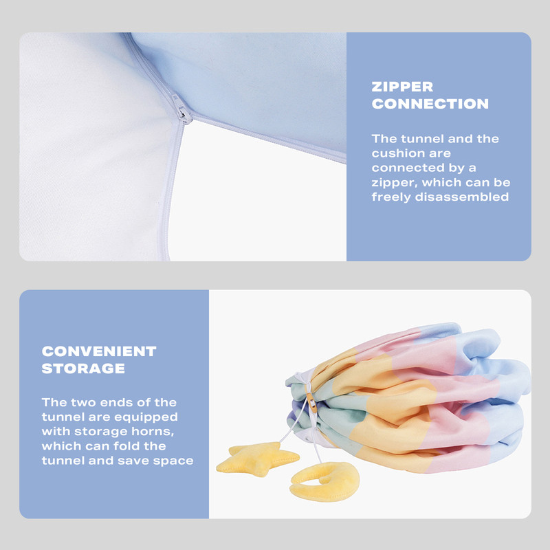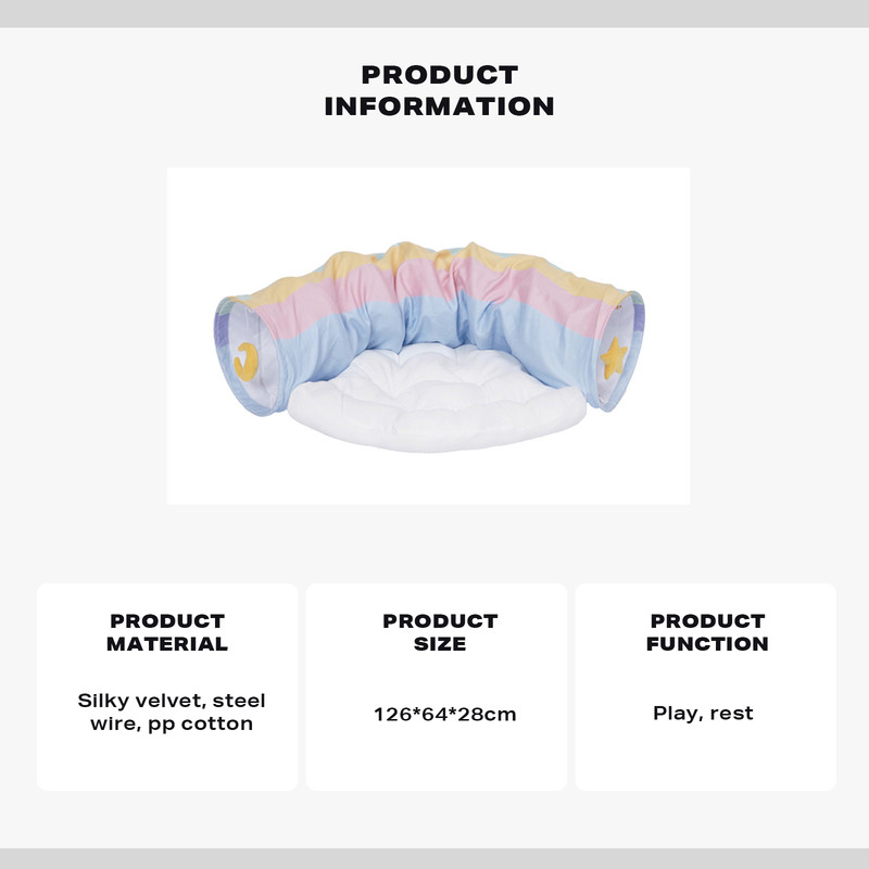 Creative Design:Our cat bed rainrow tunnel is combination pet bed and cat tunnel, built-in star toy, this bed gives your cat a cozy space to play, relax and rest, keeping your cat entertained for long hours.