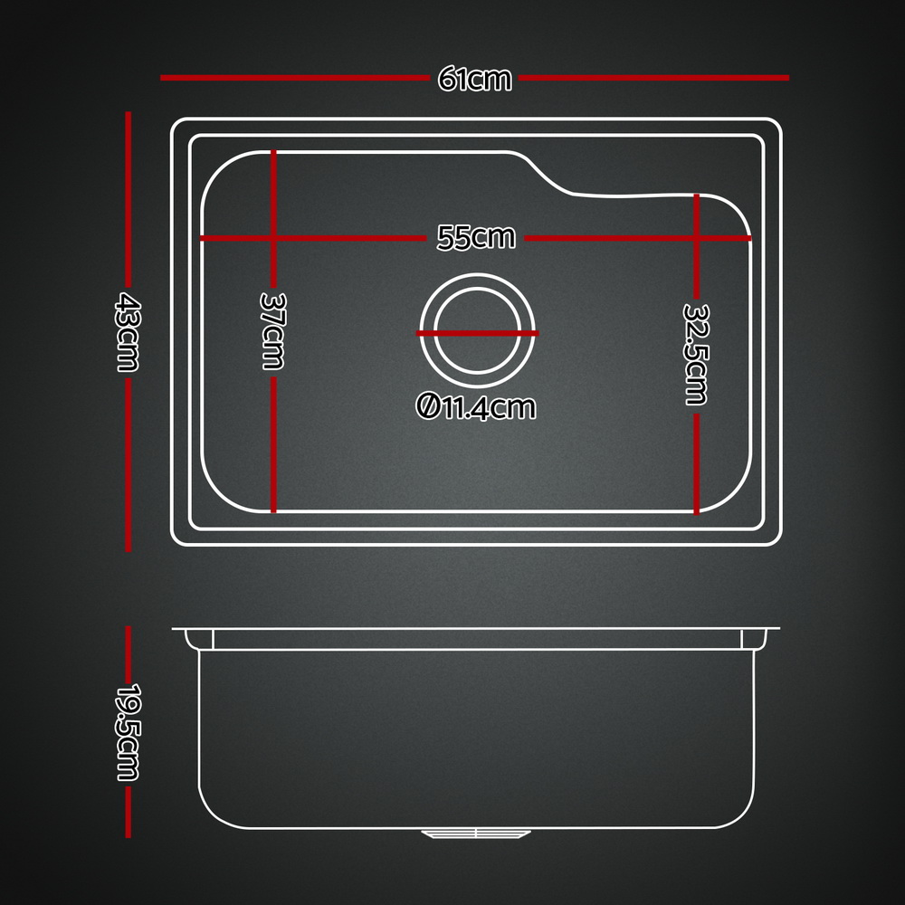 Cefito Kitchen Sink 61X43CM Stainless Steel Basin Single Bowl Silver Drain Basket