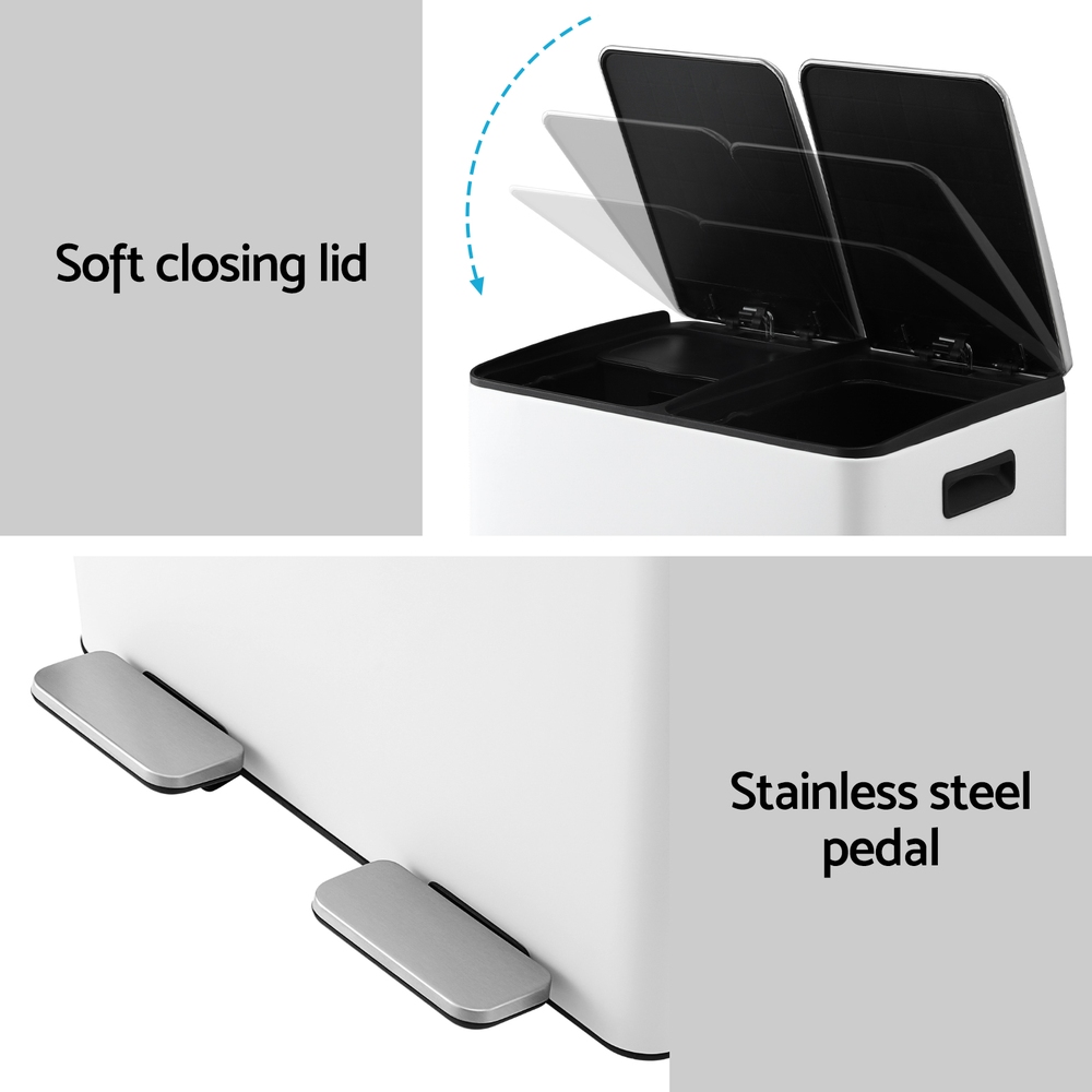 Cefito Pedal Bins Rubbish Bin Dual Compartment Waste Recycle Dustbins 60L White