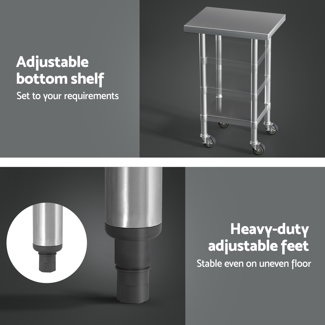 Cefito Stainless Steel Kitchen Benches Work Bench Wheels 61X46CM 430