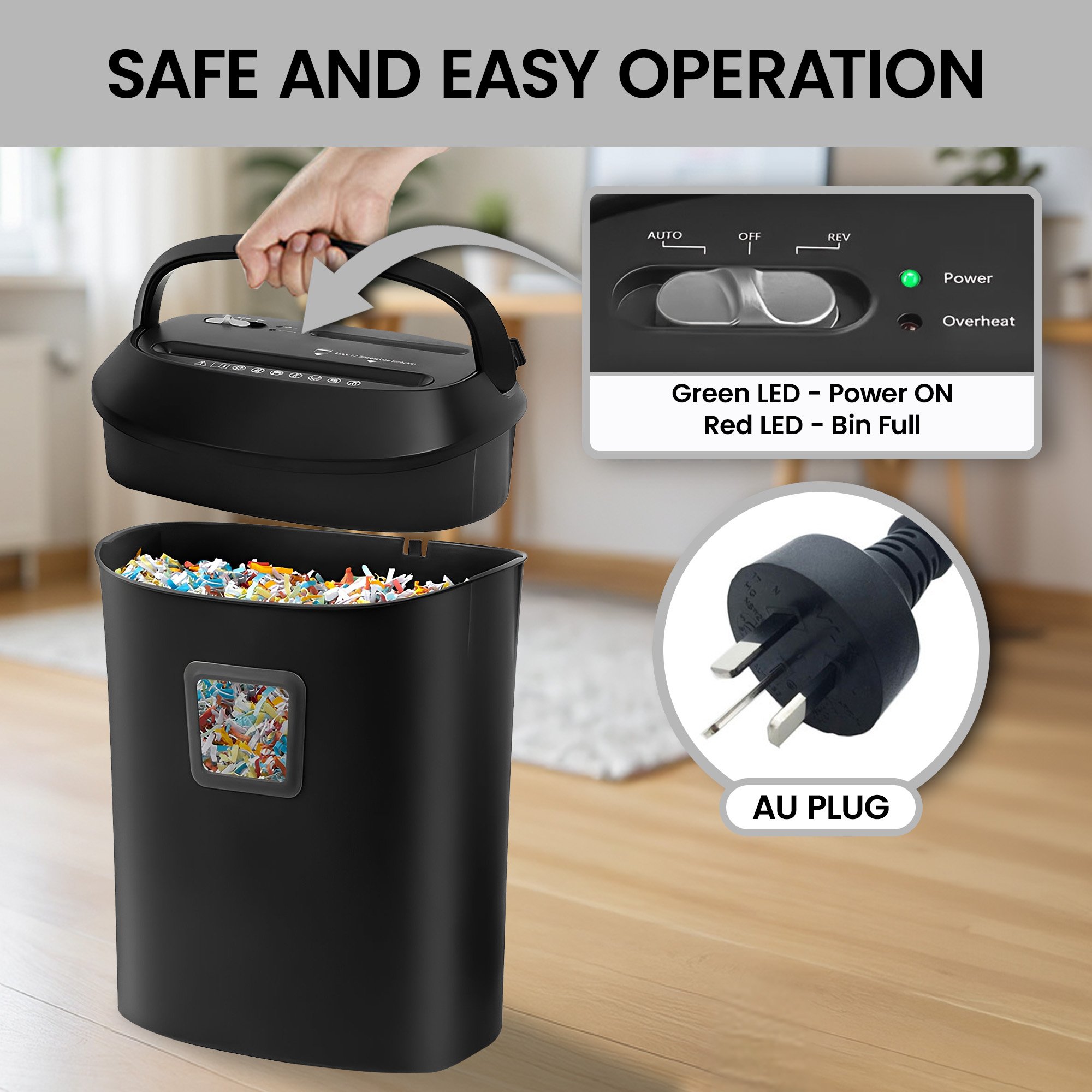 The 25L bin holds plenty before needing to be emptied, while the auto start/stop and manual reverse functions make operation simple. Built for quiet, reliable performance, this shredder helps you keep sensitive info secure without the mess or hassle.